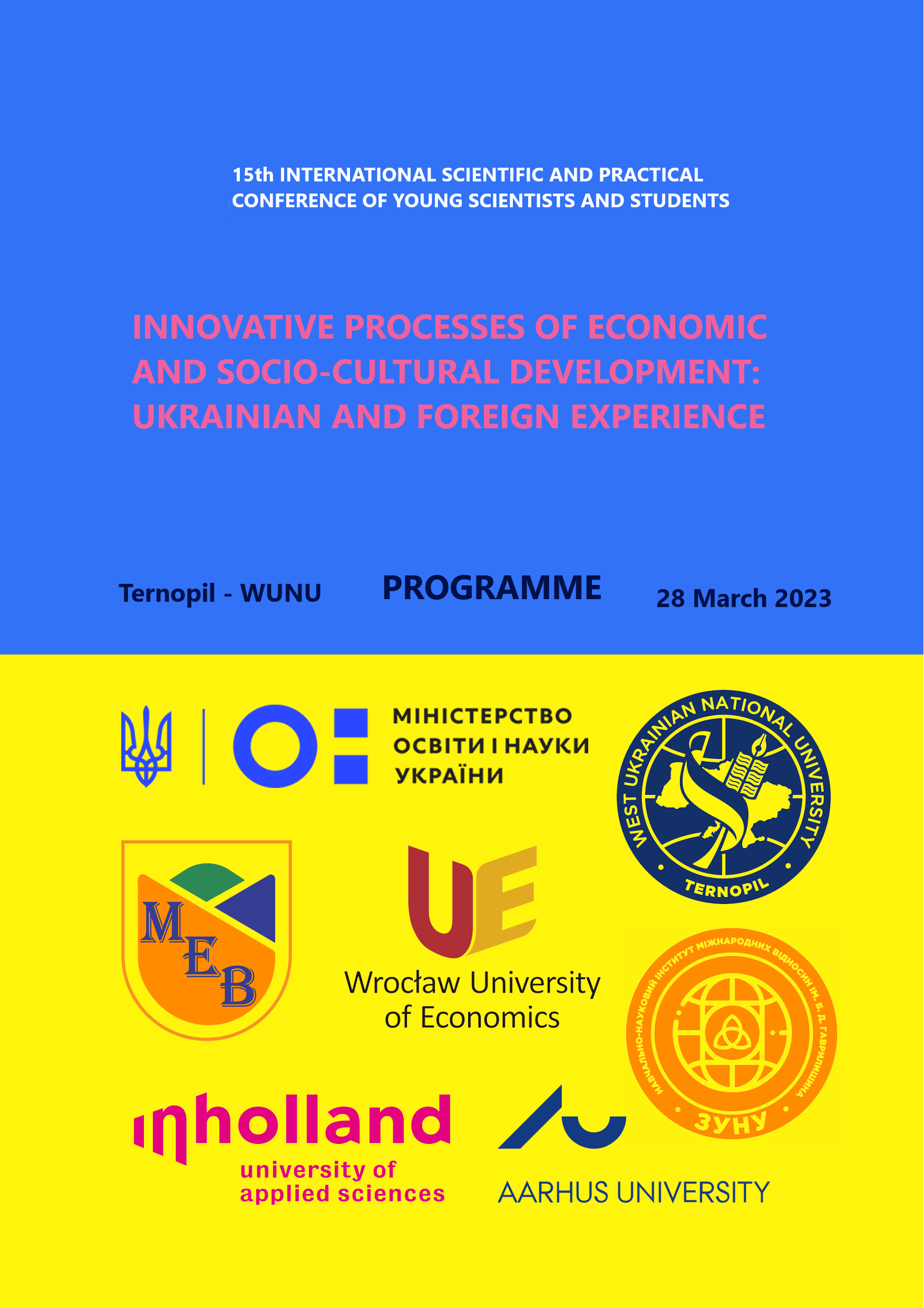 We invite scientists and everyone interested to take part in the 16th International Scientific and Practical Conference of Young Scientists and Students "Innovative Processes of Economic and Socio-Cultural Development: Ukrainian and Foreign Experience", which will be held on March 28, 2023 at 10:00-13:00 at West Ukrainian National University.