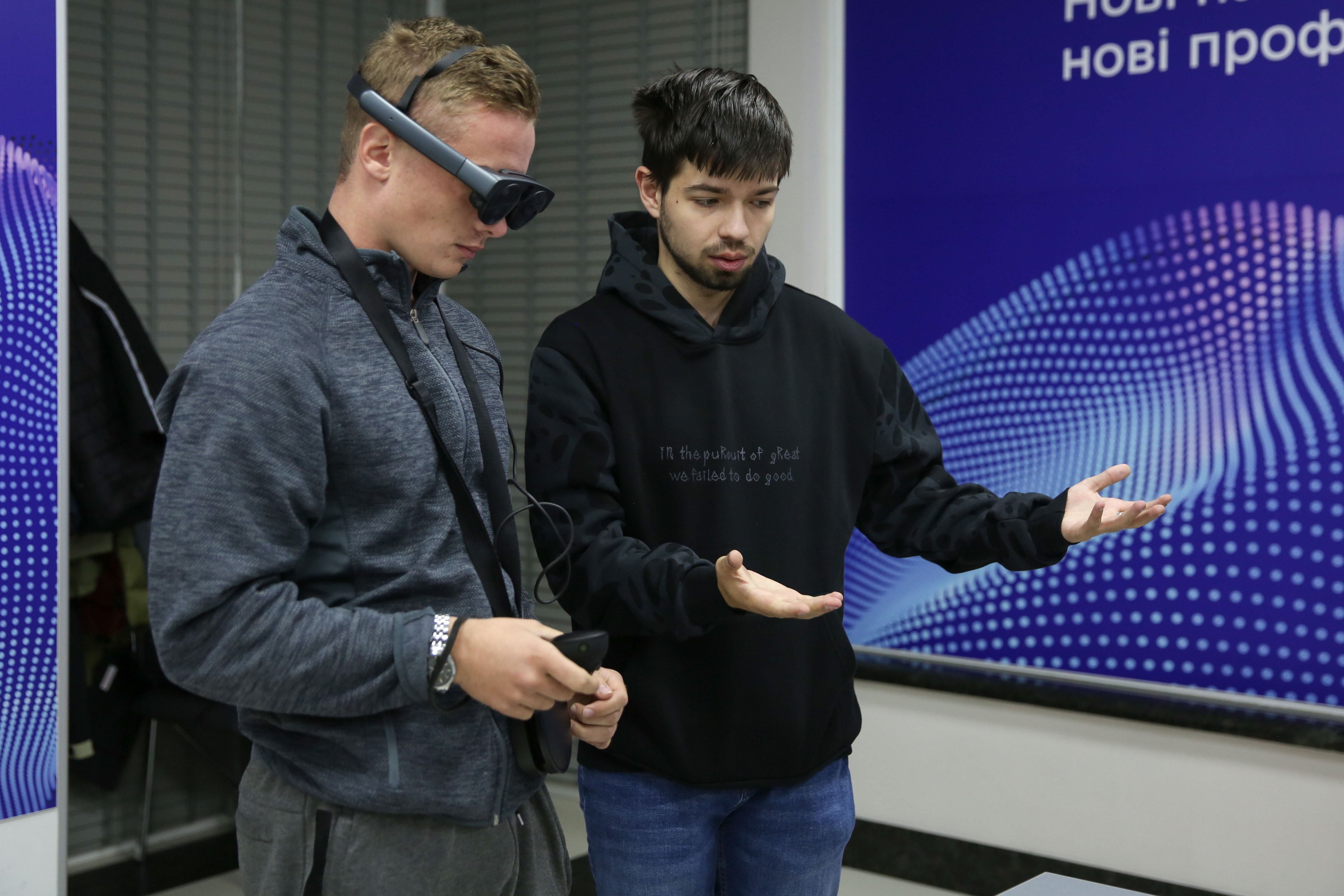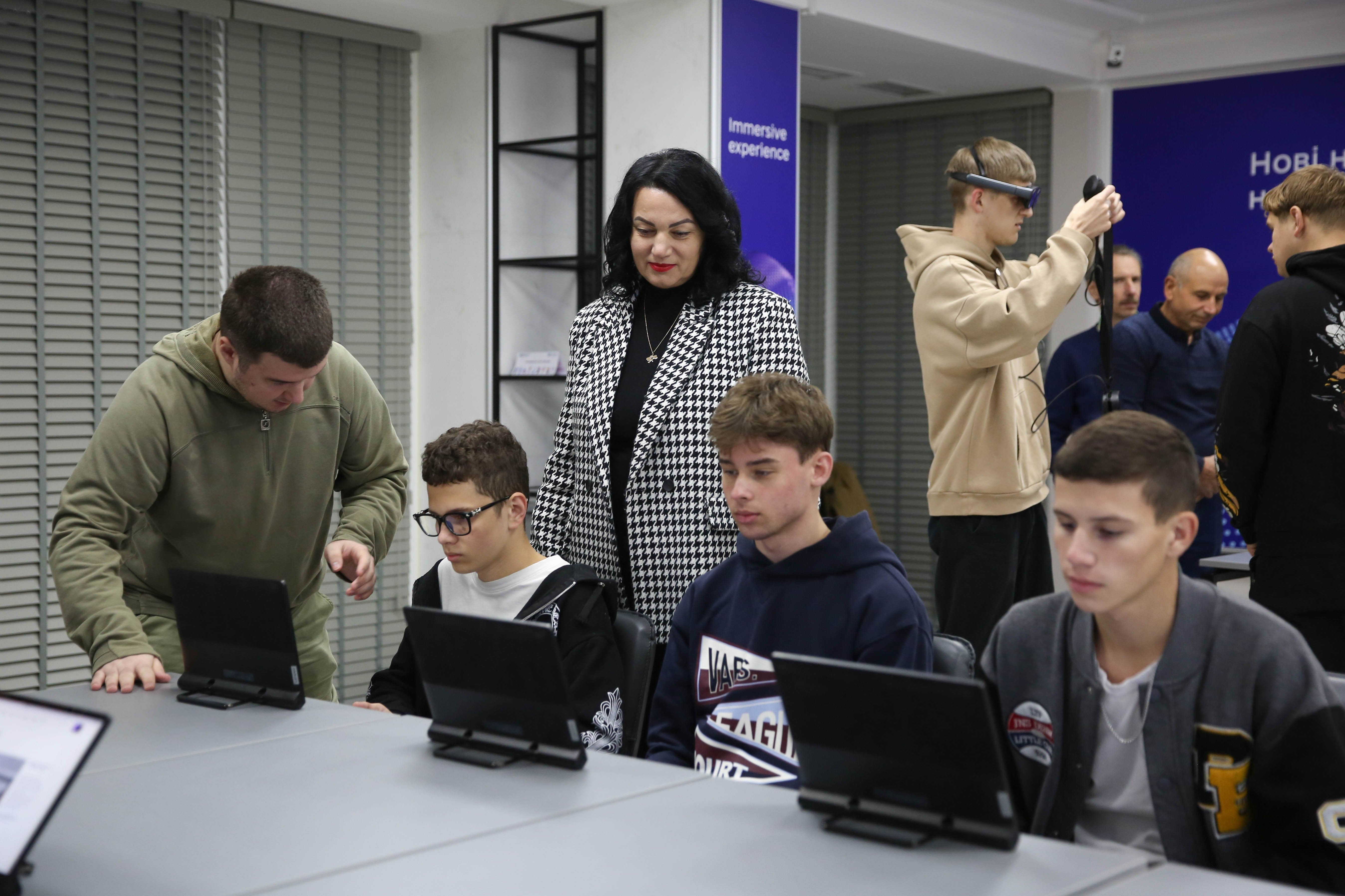 Hub director Nazar Ivanitskyi spoke about the capabilities of the immersive multifunctional hub, explained the rules for using 3D glasses for virtual viewing, and familiarised students with how solar panels work.