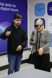 The topic of this practical study, as noted by Olha Zavytii, Associate Professor of the Department of Energy Systems and Business Analytics, was solar energy. In the immersive hub, students had the opportunity to virtually see how solar panels work and their importance for the modern world.