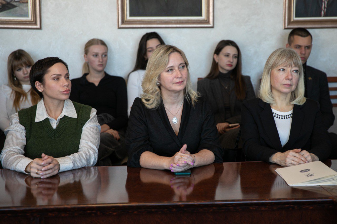 The Vice-Rector for Academic Affairs and Research, Uliana Koruts, and Professor Fryderyk Zoll from the Jagiellonian University (Republic of Poland) and Osnabrück University (Germany), acting Dean of the Faculty of Law Valentyna Sloma, and associate professors Tetiana Yurchyshyn, Tetiana Podkovenko, and Liudmyla Savanets.