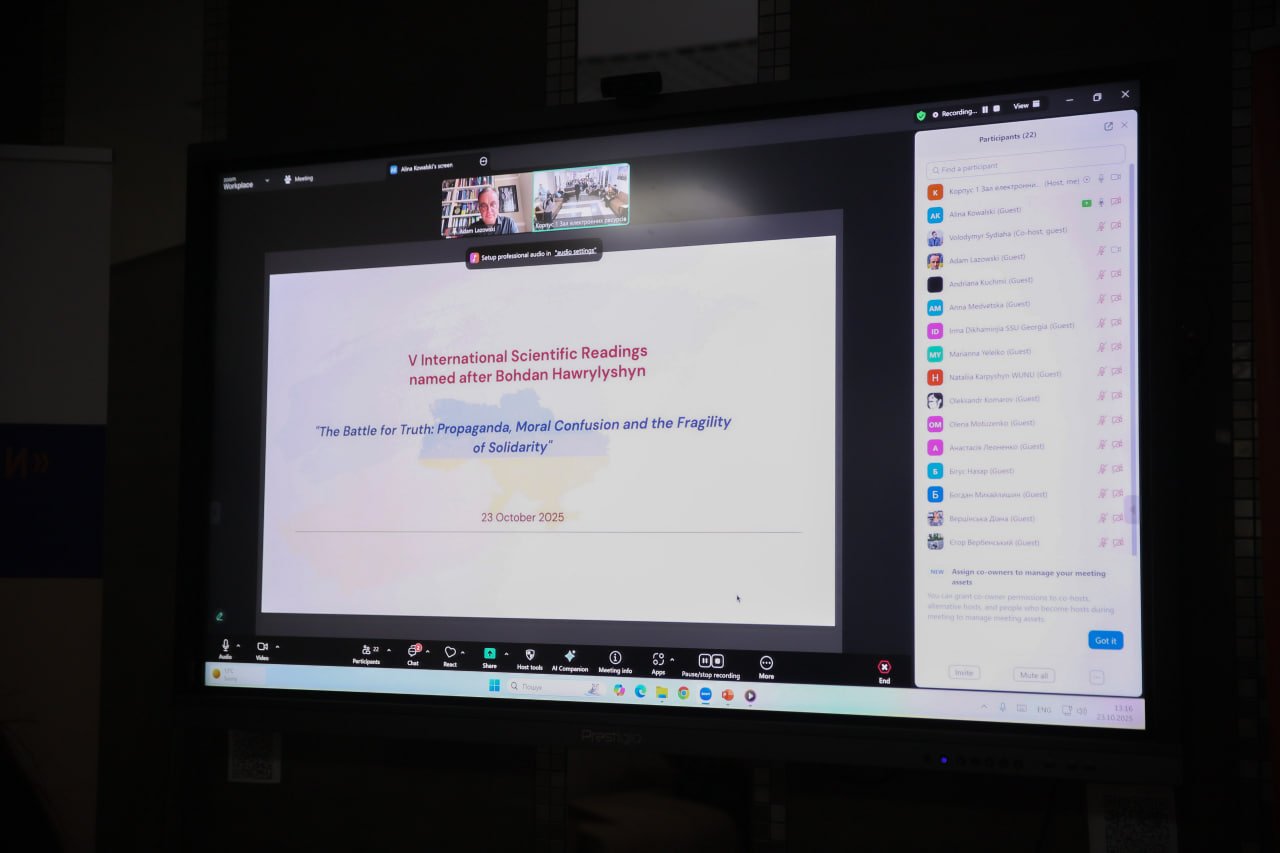 The V International Scientific Readings once again affirmed the importance of international cooperation, the humanistic approach, and the scientific understanding of global challenges. This event served as a guidepost for new achievements in the professional and public activities of the participants, upholding Bohdan Hawrylyshyn's ideas of responsibility, moral values, and the culture of peace as the foundation for the sustainable development of Ukraine and the world. His legacy is alive and continues to inspire new generations to act for the good of humanity.