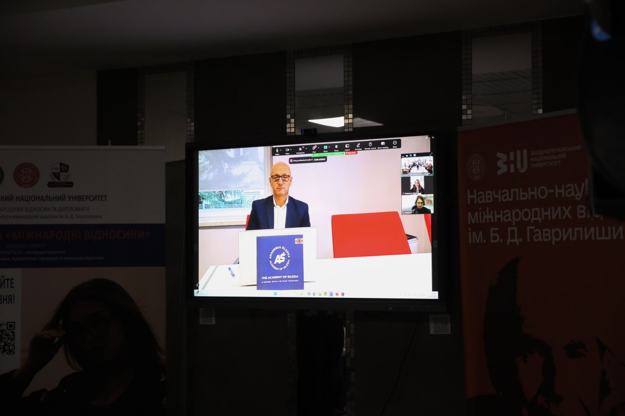 Greetings to the participants were delivered by Uliana Koruts, Vice-Rector for Academic Affairs and Research (International Relations); Lyudmyla Havrylyuk-Jensen, Director of the B. Havrylyshyn Education and Research Institute of International Relations; Marianna Yeleiko, Head of the Bohdan Hawrylyshyn Family Foundation; Tetyana Chubak, Honorary Consul of Hungary in Ternopil and Ternopil Oblast; Aleksander Ostenda, Rector of the Silesian Academy; Irma Dikhamindzhia, Professor, Dean of the Faculty of Business and Social Sciences at Sukhumi State University; and Ostap Kushnir, PhD, Lecturer in Politics and International Relations, Associate Head Global Engagement School of Area Studies, Sociology, History, Politics and Literature, University of Portsmouth, UK.