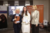 During the award ceremony, Tetyana Chubak, Honorary Consul of Hungary in Ternopil and Ternopil Oblast, presented the Grand Prix Diploma and gifts to Olena Plaksa, a first-year student of the «International Relations» educational program (WUNU). The 1st Degree Diploma and gifts were awarded to Viktoriia Makieieva, a first-year student of the «International Relations» educational program (WUNU). Diplomas of the 2nd Degree and gifts were received by Sofiia Menko, Yelyzaveta Chernetska, and Yeva Khmelnytska, who are first-year students of the «International Relations» educational program (WUNU). Diplomas of the 3rd Degree and gifts from Lyudmyla Havrylyuk-Jensen, Director of the Educational and Research Institute of International Relations named after B. D. Hawrylyshyn, were awarded to Sofiia Baidalka, a student of the "International Information" educational program at Lviv Polytechnic National University; Meriem Izmailova, a student of the «Hotel and Restaurant Business» educational program (WUNU); and Diana Lysak, a student of the "Business Communications and Translation" educational program (WUNU). Additionally, Bohdan Mykhailyshyn and Yehor Verbenskyi, first-year students of the «International Relations» educational program (WUNU), received gifts and Certificates of Merit for active participation in the All-Ukrainian Essay Contest from Oksana Tulai, Head of the Department of International Relations and Diplomacy.
