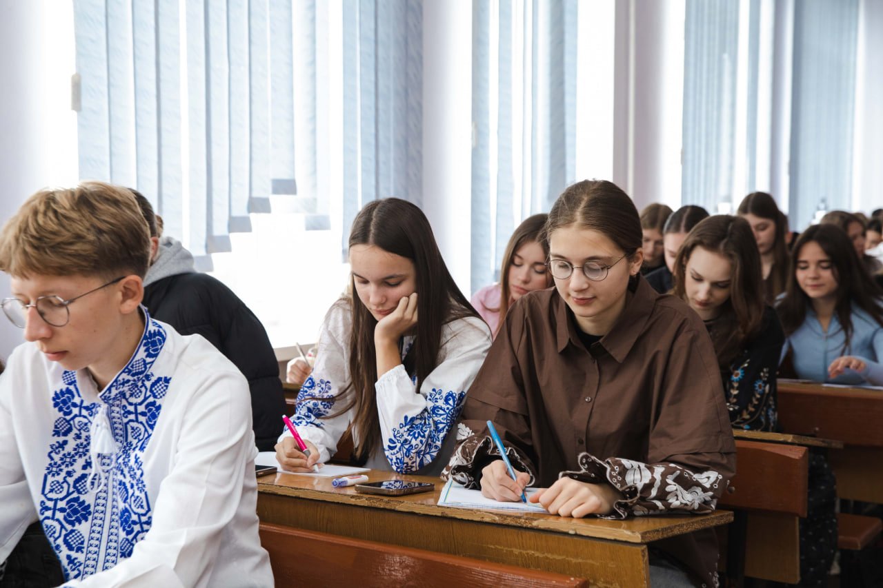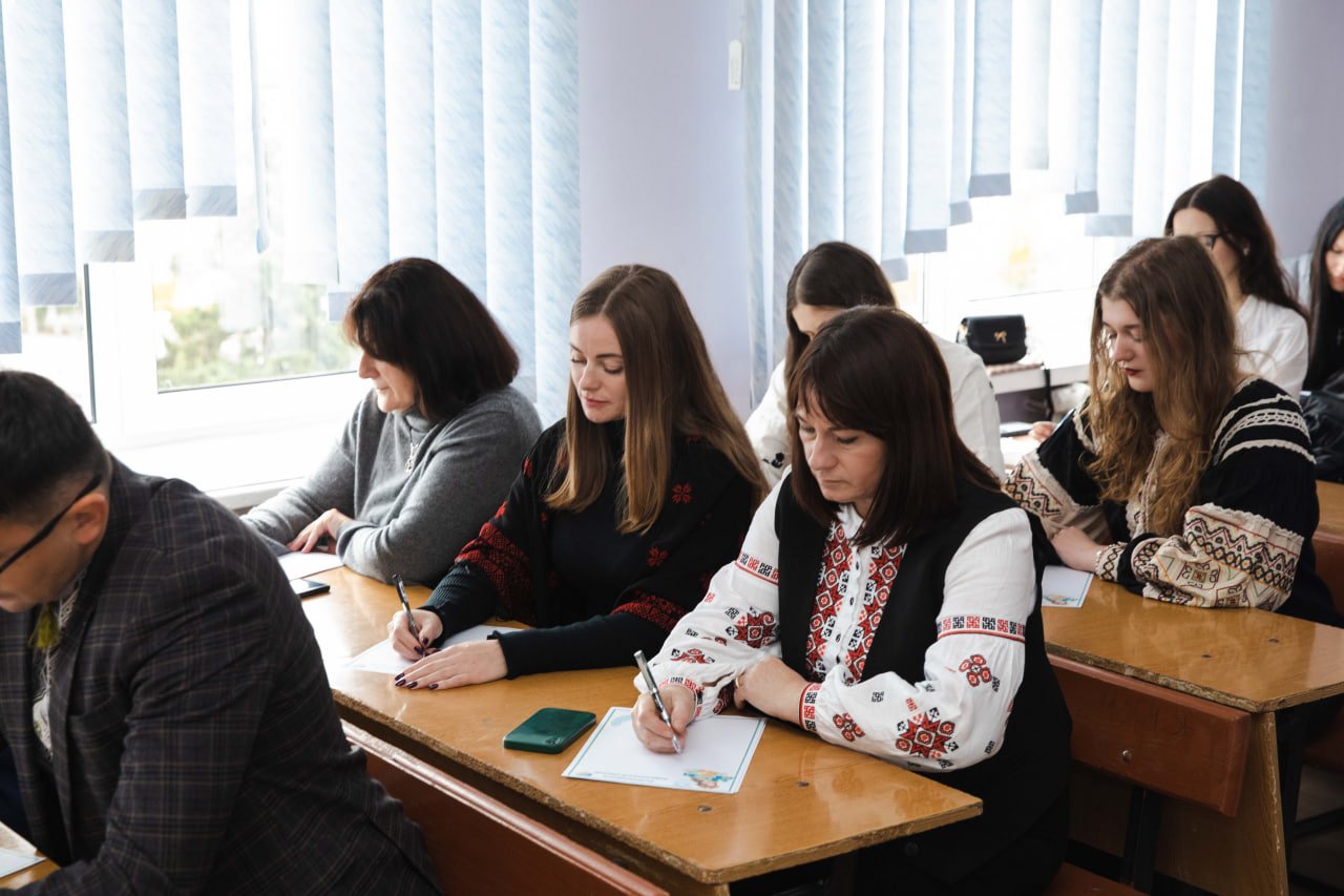 The administration, teachers, students, and staff gathered to test their literacy skills and feel a sense of unity in their love for their native language, together with the whole of Ukraine. This year's dictation, which was broadcast live on Ukrainian radio, became a symbol of the spiritual connection between generations, respect for the Ukrainian language, and the affirmation of national identity.