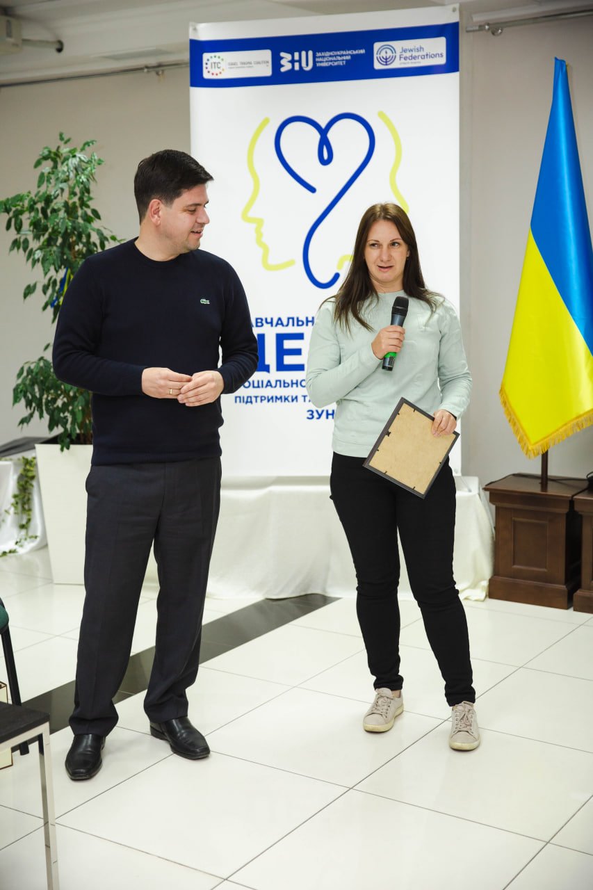 This project received funding from the European Union (ERASMUS-EDU-2023-CBHE) under Grant Agreement No. 101129315. The project coordinator in Ukraine was the International Foundation for Social Adaptation, whose president (Volodymyr Rubtsov) attended the ceremony. The director of the regional employment centre, Mykola Horodetskyi, the head of the NGO ‘Educational and Social Initiatives’, Roman Kulyk, and his deputy, Volodymyr Uhryn, also came to congratulate and commend the students.