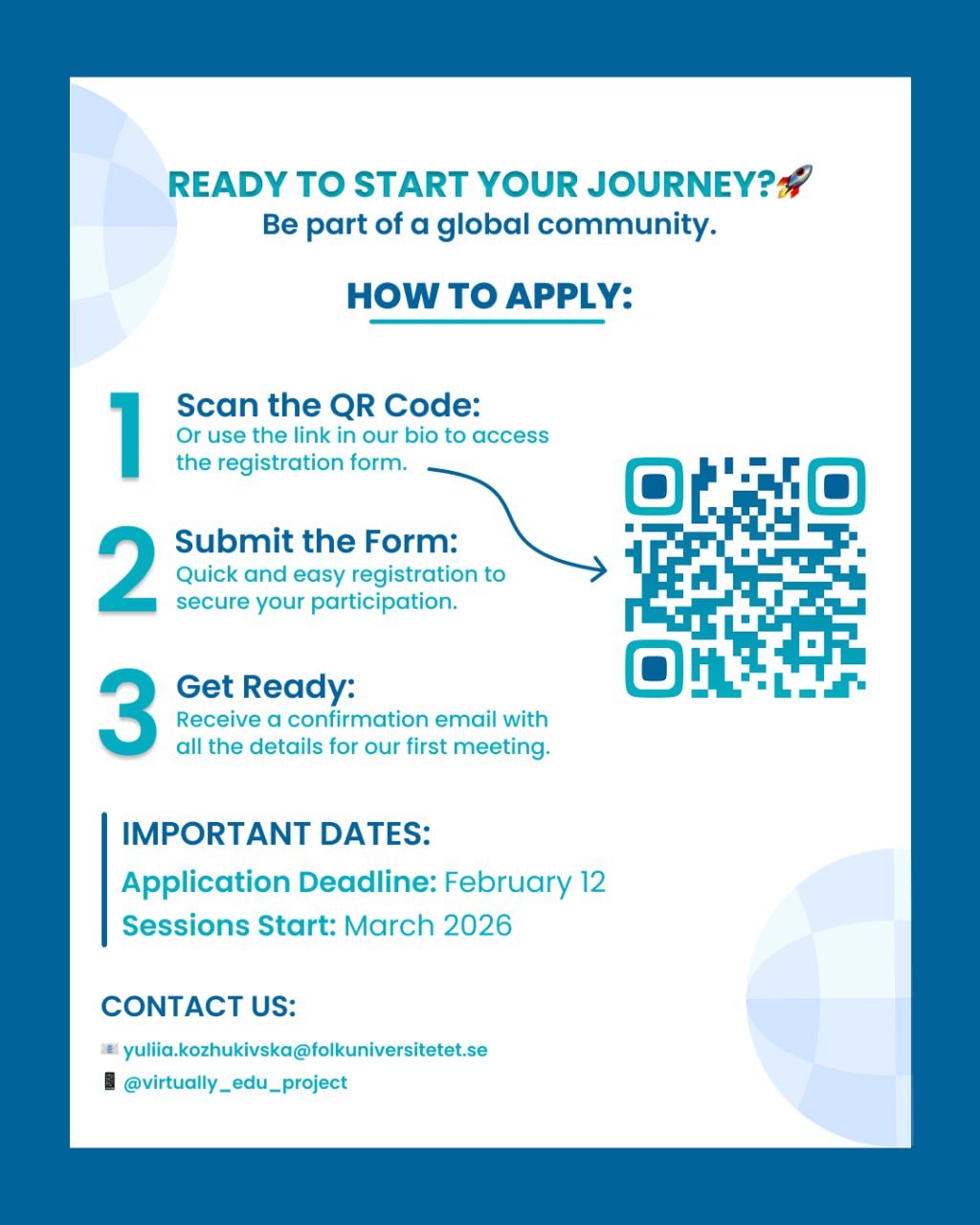If you have any further questions, please contact us at: yuliia.kozhukivska@folkuniversitetet.se