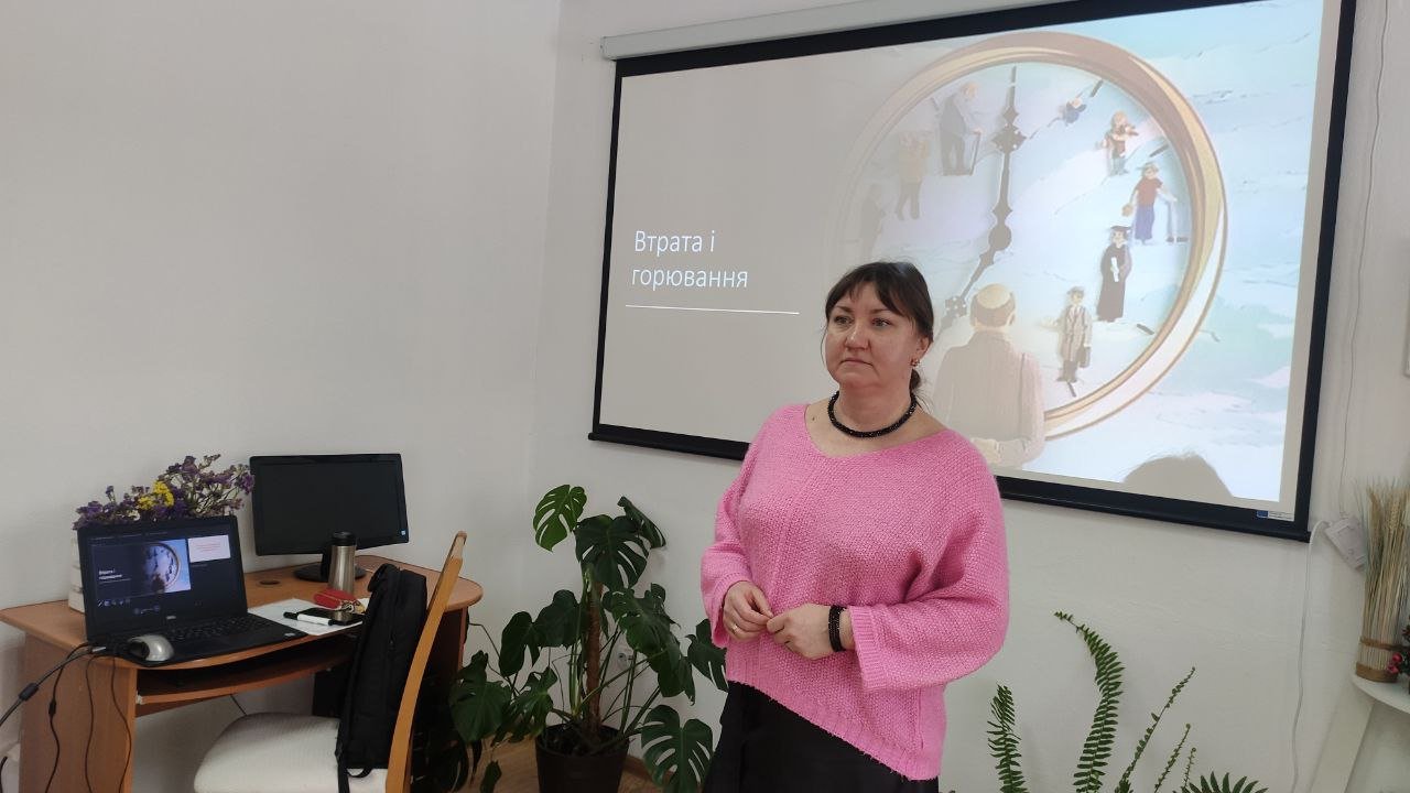 Another practical training session on grief and psychological support was organised for volunteers and social workers. Together with the Centre's specialist, Associate Professor of Psychology and Social Work Alla Senyk, participants discussed the nature of loss and its psychological manifestations, emotional reactions and behavioural changes during the grieving process, tools for safe and effective emotional support, as well as resources that promote the restoration of inner stability and the development of resilience.