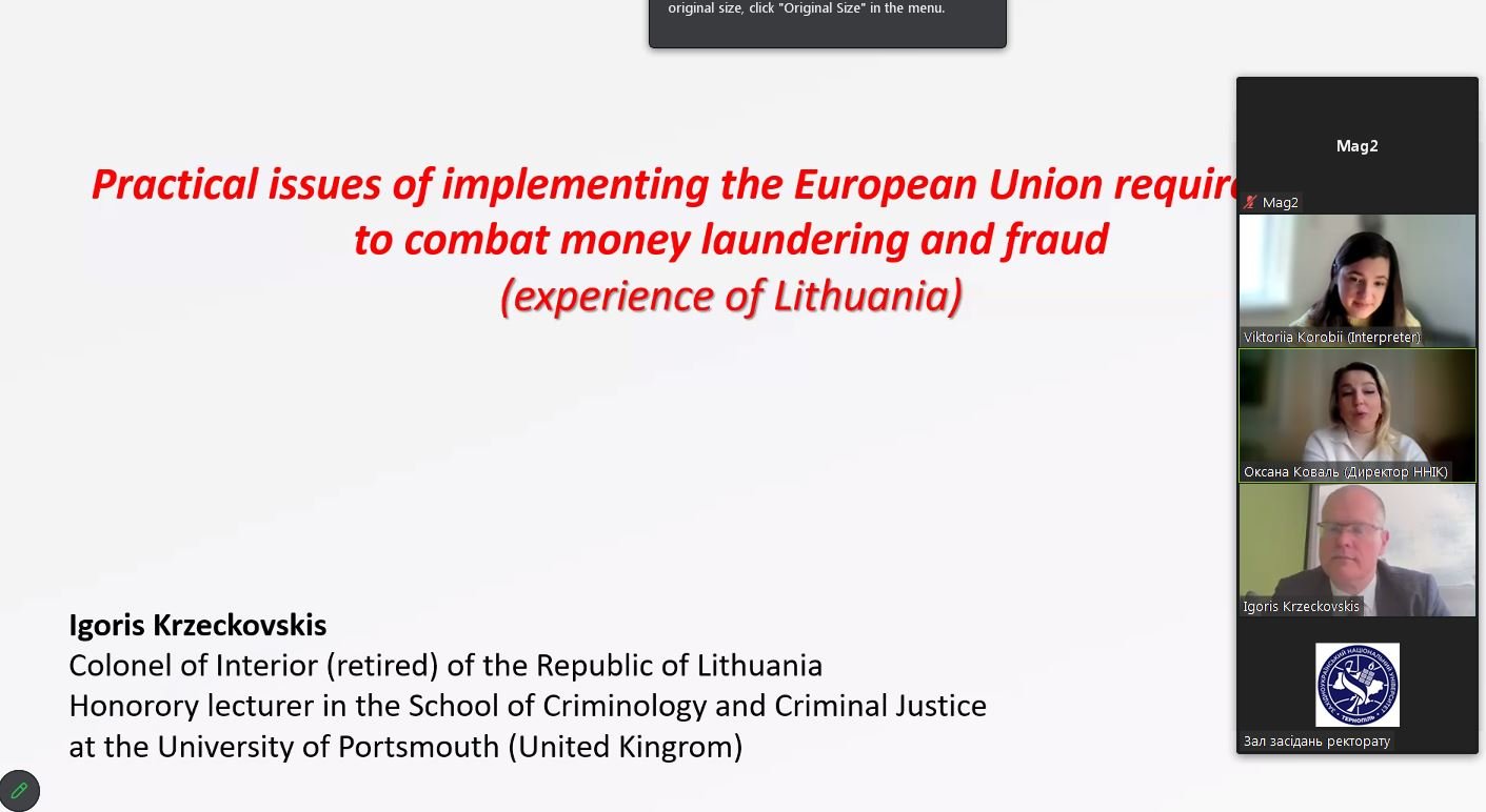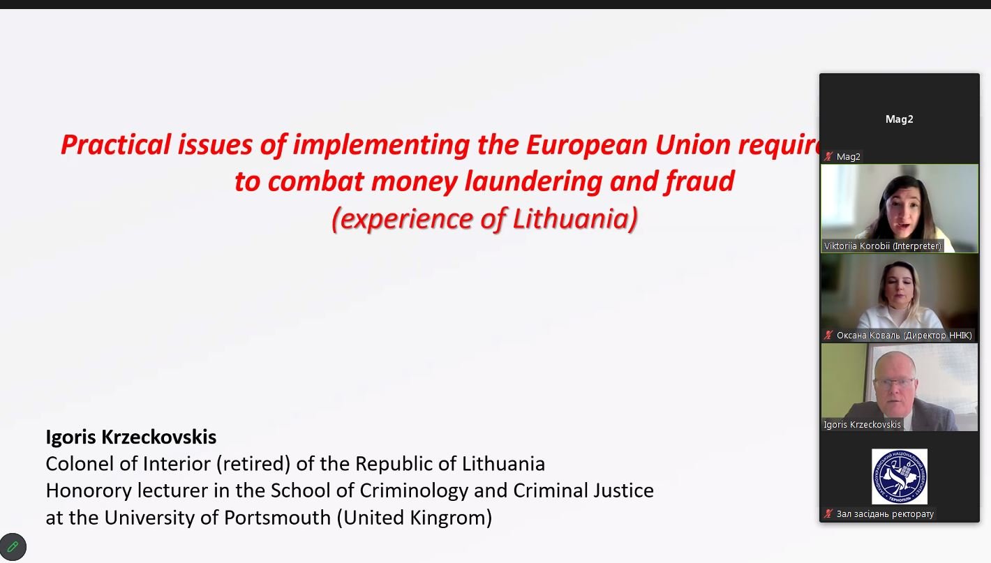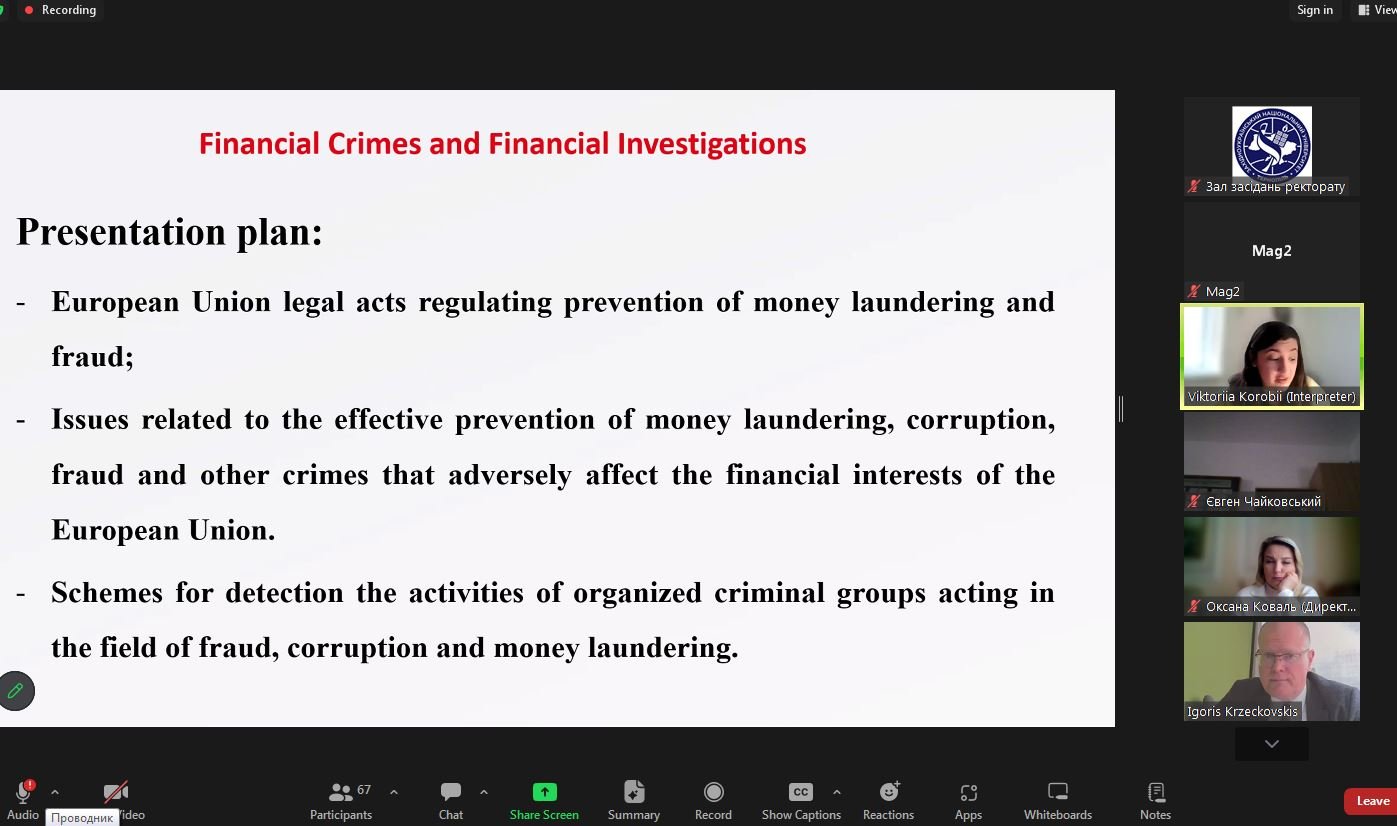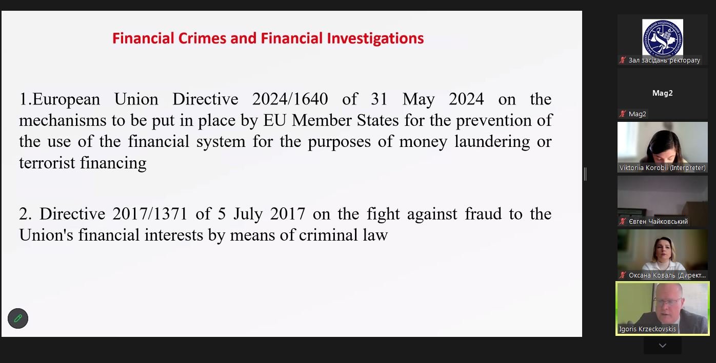 During the presentation, practical aspects of implementing European requirements in the field of AML/CFT were discussed in detail, in particular the latest EU directives, the system for monitoring the use of funds, and tools for protecting the financial interests of the Union. The lecturer emphasized the importance of interagency cooperation, a risk-based approach, and timely information exchange between national and international institutions.
