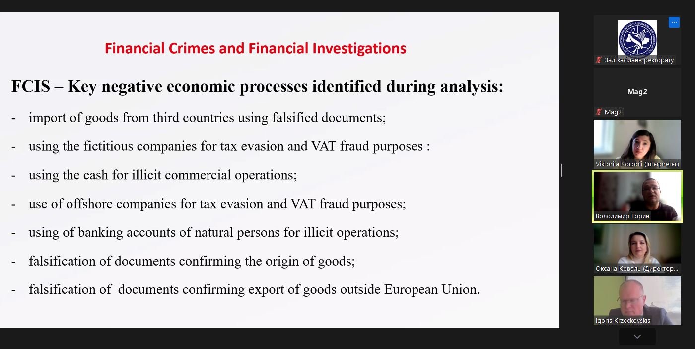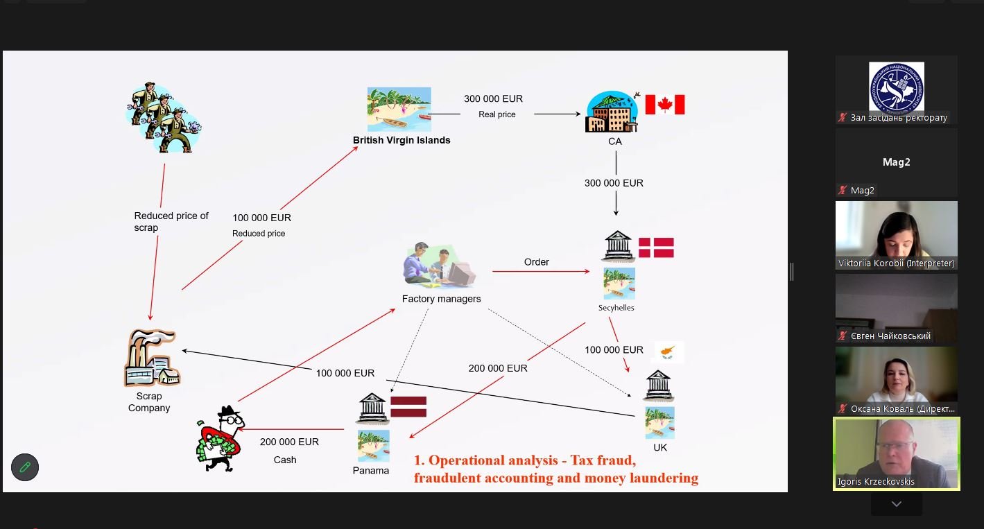A section of the lecture was devoted to methods of detecting financial crimes. Participants were shown typical schemes of misuse of EU funds: the use of fictitious and “transit” companies, the involvement of offshore jurisdictions, manipulation of contracts and reporting, as well as the illegal receipt or misuse of grants and subsidies. Specific cases were used to examine the logistics of financial analysis, tracing funds, and documenting evidence.