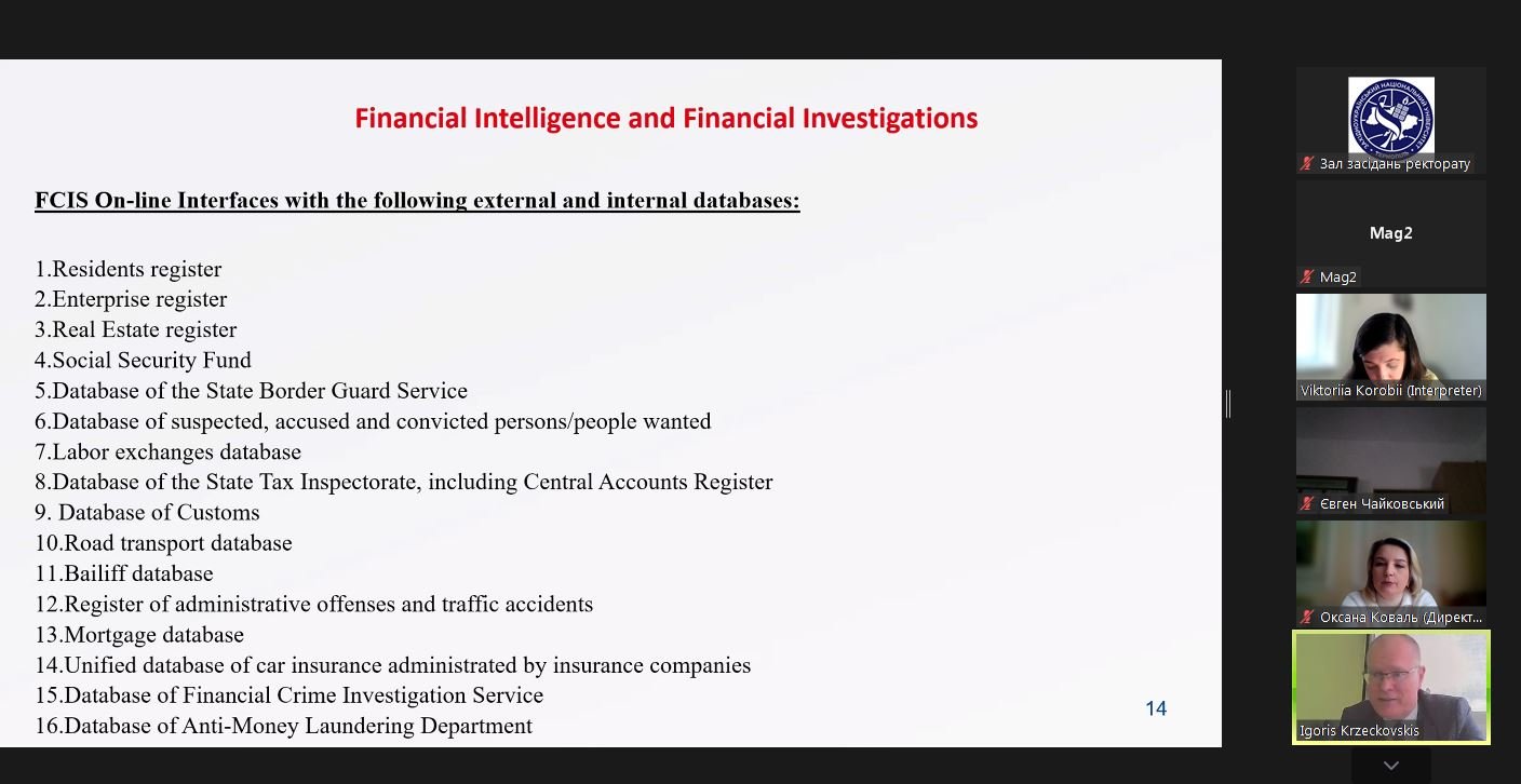 The speaker - Igoris Krzeckovskis, international consultant on combating financial crime and asset recovery at the United Nations Office on Drugs and Crime, honorary lecturer at the School of Criminology and Criminal Justice at the University of Portsmouth (United Kingdom), and former advisor to the Financial Crime Investigation Service of the Ministry of the Interior of the Republic of Lithuania, delivered a lecture that was both practical and informative. The combination of international experience and practical work in the field of financial investigations made the lecture highly relevant.