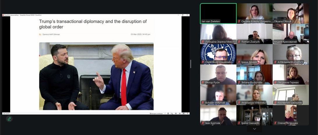As part of a special project by Andriy Krysovatyy, Doctor of Economics and Professor, entitled ‘Public Finance Studies’ , teachers, researchers, postgraduate students, and those enrolled in higher education programmes at the Faculty of Finance and Accounting, as well as anyone else interested, had the opportunity to attend an interactive strategic session entitled ‘Geopolitics: Changing the World Economic Order’ on February 3.