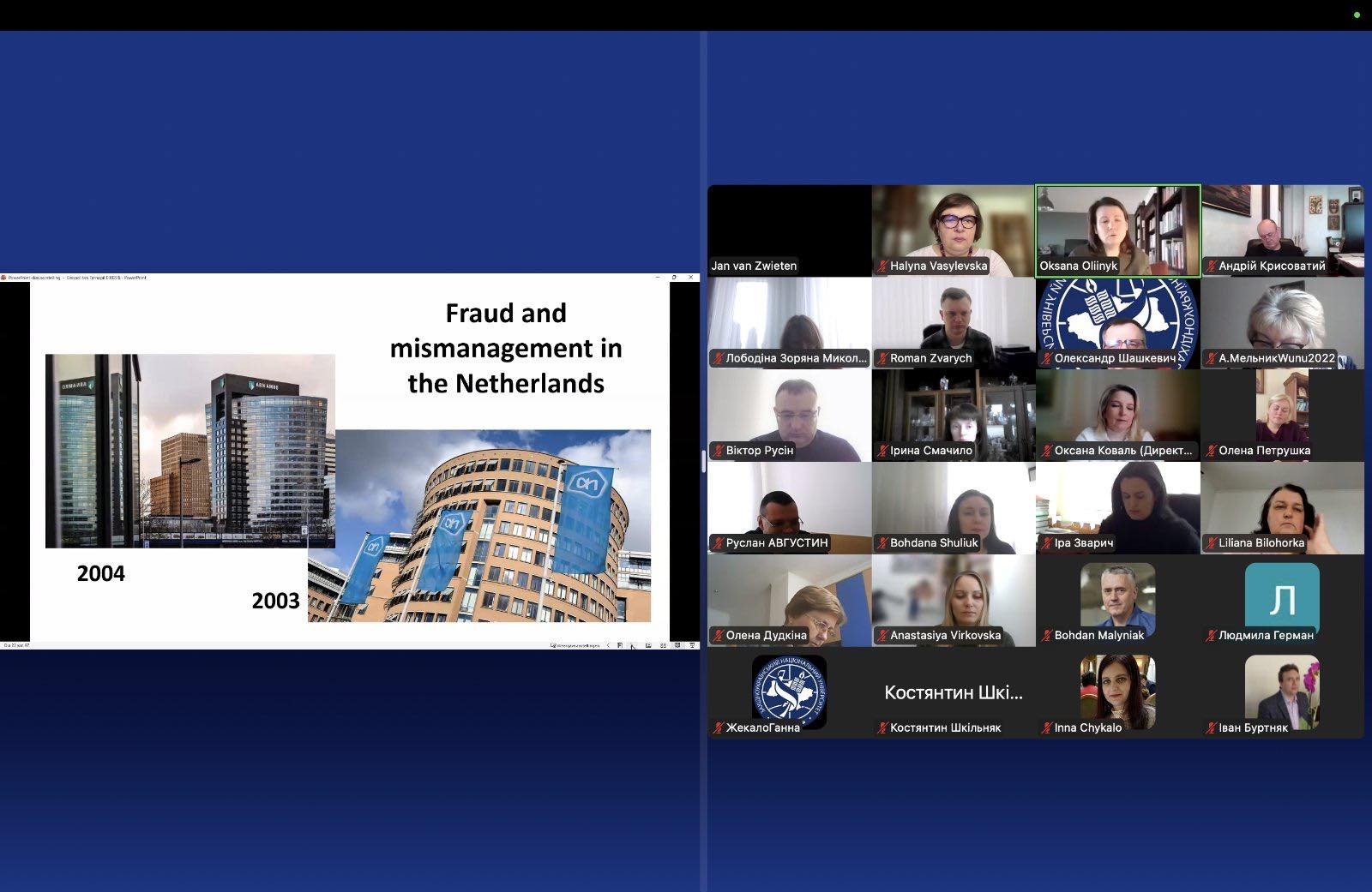 The speaker was Jan van Zwieten, professor of management and finance, rector of the Netherlands Business Academy, Doctor honoris causa, certified operational auditor (Netherlands), member of the supervisory board of West Ukrainian National University.