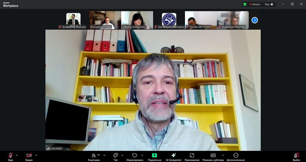 The featured speaker for the event was Luca Rolle, professor of dynamic psychology at the University of Turin, clinical psychologist, and head of the School of Specialization in Health Psychology (Italy). The webinar was moderated by Volodymyr Horyn, Doctor of Economics, professor of the S.I. Yuriy Department of Finance at WUNU.