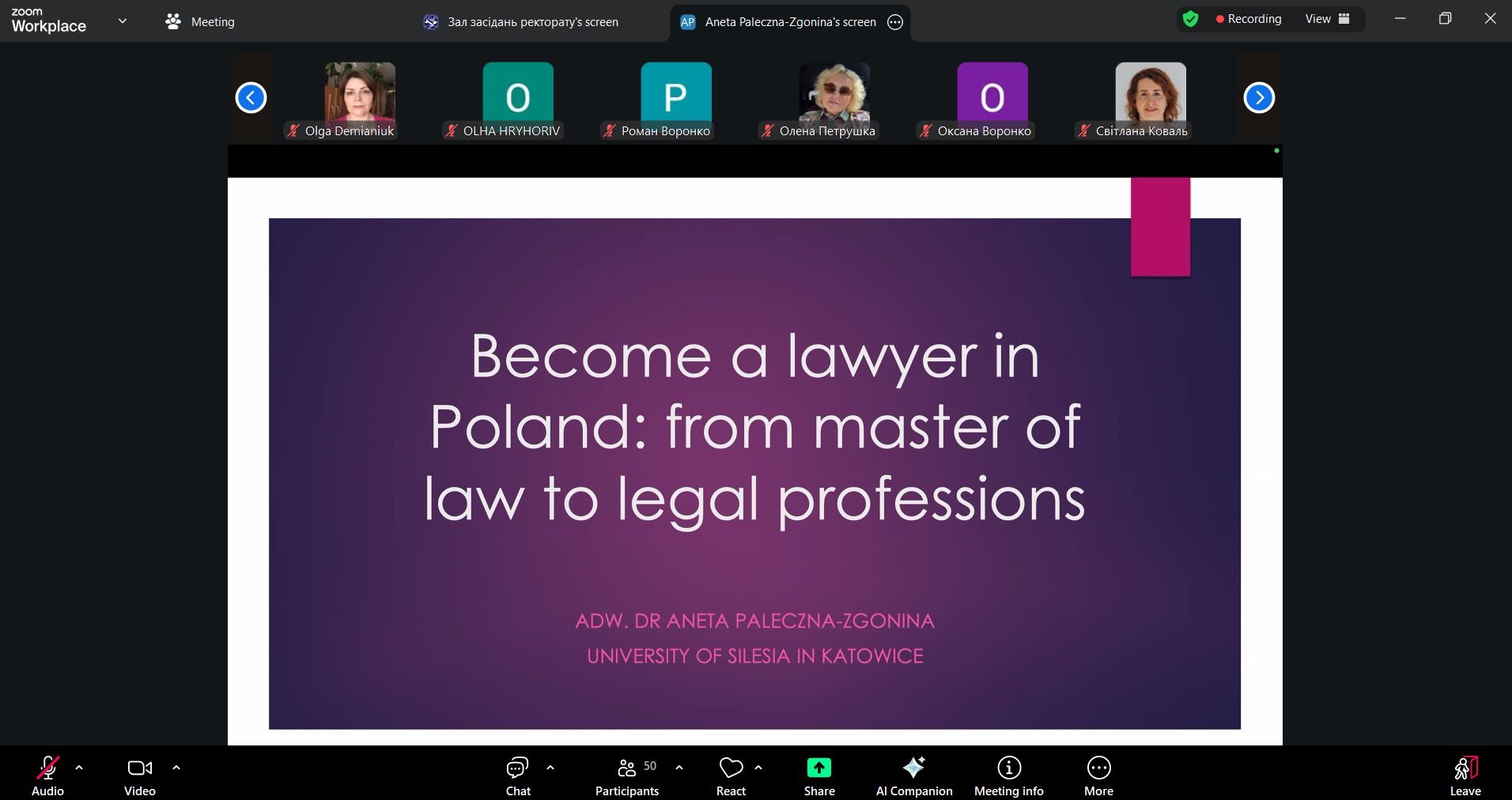 A lecture entitled ‘From Master of Law to Legal Professions’ was held at West Ukrainian National University.