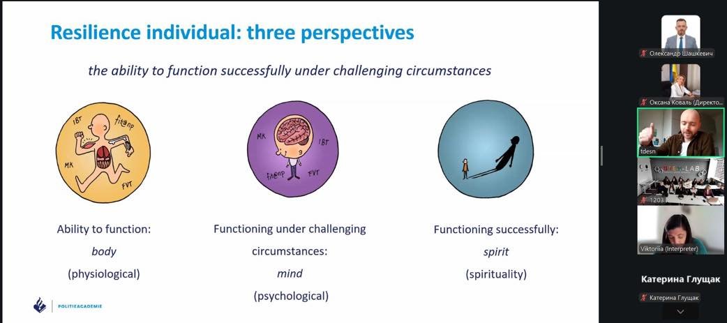 Lecture by Teun-Pieter de Snoo, lecturer at the Netherlands Police Academy, entitled “Resilience in crisis conditions: psychological foundations – the case of police officer training.”