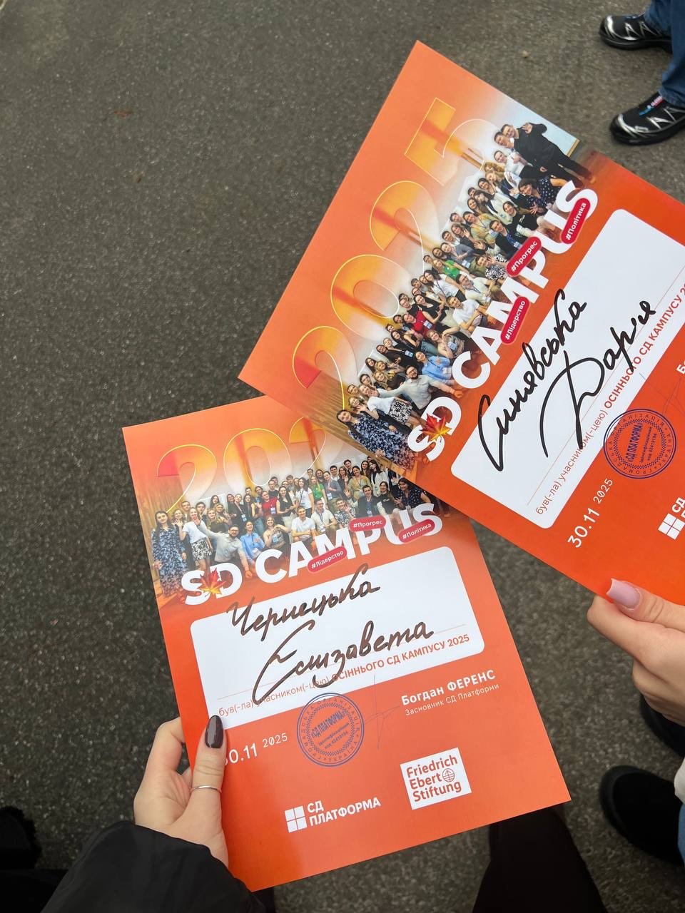 Students of the Department of International Relations and Diplomacy of the B. Havrylyshyn Education and Research Institute of International Relations at WUNU, who are studying under the International Relations educational programme – Solomia Okun, Yelyzaveta Chernetska, Bohdan Mykhailyshyn, and Daria Syniarska – took part in the autumn SD Campus, which was an inspiring experience and a true school of leadership for them. The event was organised by the SD Platform NGO with the support of the Friedrich Ebert Foundation.