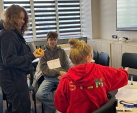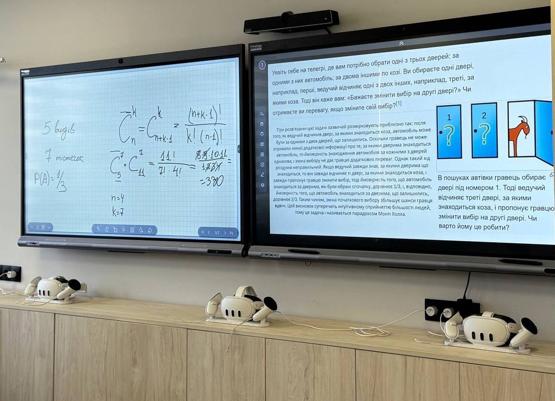 The pupils also had the opportunity to delve into the world of mathematical statistics and probability theory alongside Oksana Bashutska. During the session, they explored the Monty Hall paradox – a problem that demonstrates how mathematical logic can contradict intuitive judgements. Using interactive panels, participants analysed formulas and combinations and experimentally verified the results, discovering that learning can be both science-based and exciting.