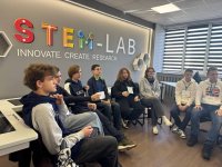 During the “STEM English: Pitching Lab” session with Viktoriia Korobii, participants consolidated the knowledge gained in the previous session by simulating job interviews after a short round-robin writing warm-up. Next, through an interactive game on the Kahoot platform, they identified the key features of formal English. After analysing a sample business proposal, the participants identified its structural elements, typical linking phrases and the most commonly used business terms. At the end, the participants created their own proposals for improving school grounds.