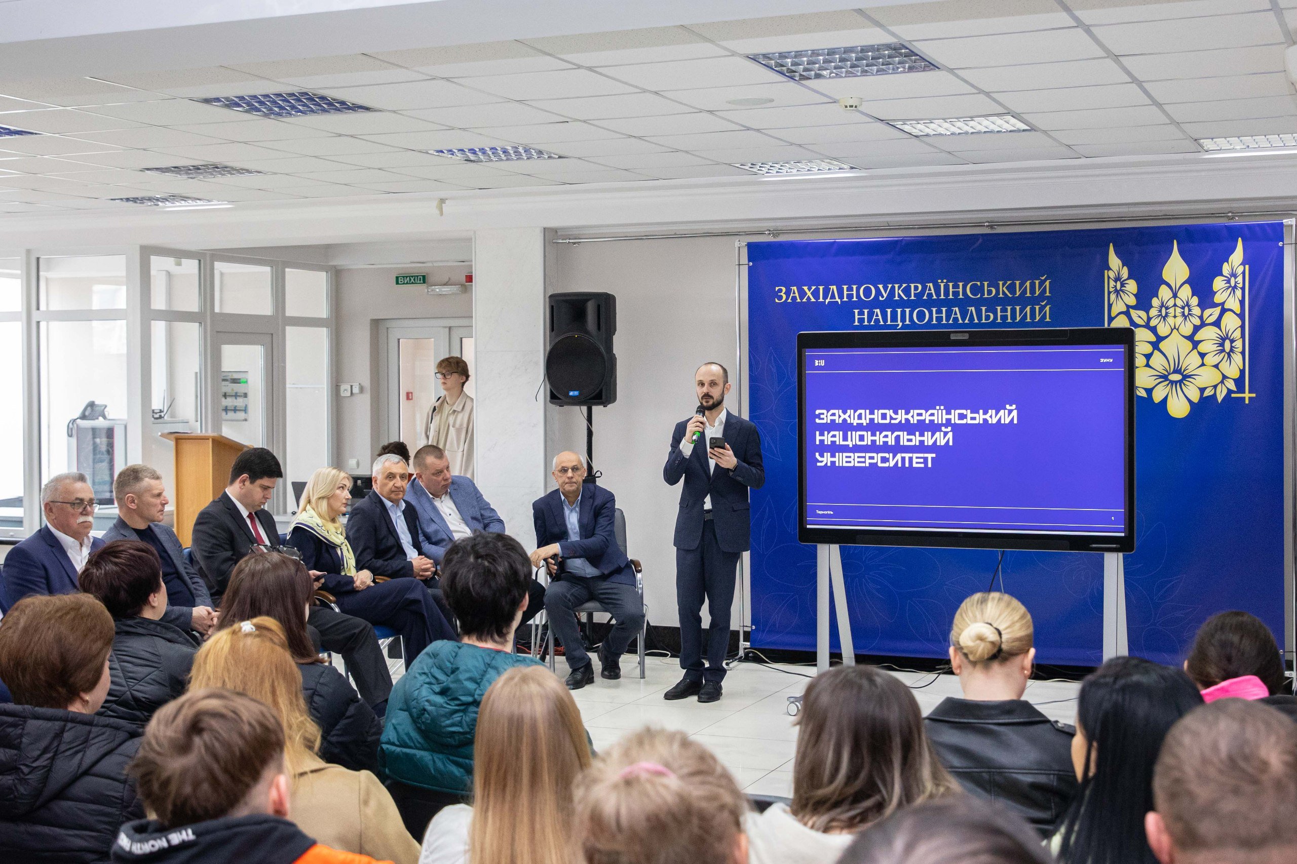 Mykola Horodetskyi, a trusted partner of WUNU and director of the Ternopil Regional Employment Centre, spoke at the Open Day. He shared useful information on employment, grants for young people, and the prospects of starting one’s own business after graduation.