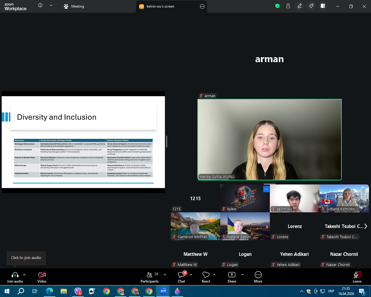 Students from the B. Havrylyshyn Institute of International Relations of WUNU, together with students from BCIT (British Columbia Institute of Technology, Canada), have successfully completed the COIL (Collaborative Online International Learning) project, which aims to foster international academic cooperation and integrate Ukrainian students into the global educational community. It was an exciting journey – from the initial introductions within the international teams to the final presentations of their own research.