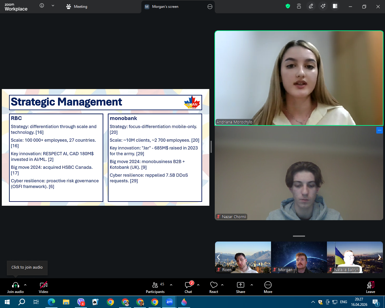Special thanks to the project coordinators – Svitlana Kominko (BCIT, Canada) and Nataliia Batryn (Department of International Economic Relations, WUNU) – for their support, their faith in the students, and the opportunity to be part of this international experience.
