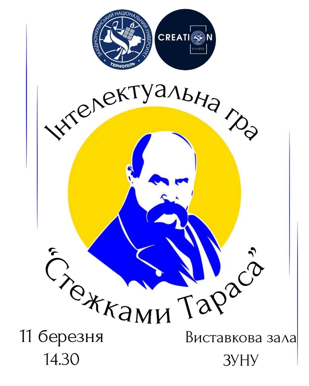Запрошуємо студентську молодь університету взяти участь в інтелектуальній грі з нагоди 212-ої річниці від дня народження Великого Кобзаря.