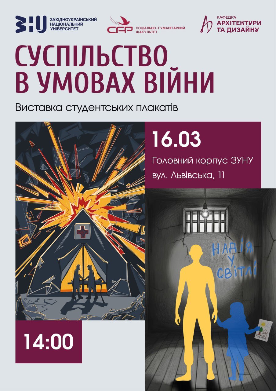 Колектив кафедри архітектури та дизайну соціально-гуманітарного факультету ЗУНУ запрошує на виставку студентських плакатів, присвячену одній із найгостріших тем сьогодення.