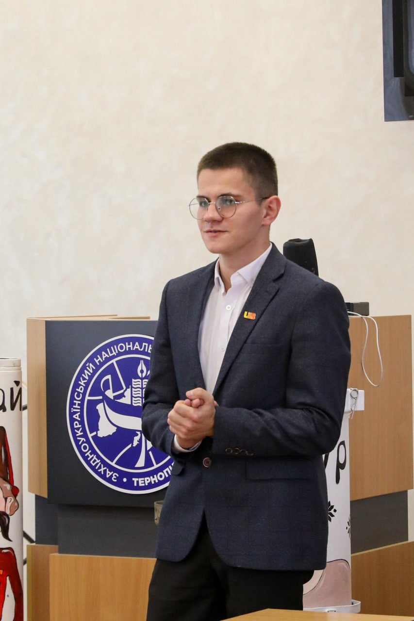 Відкрила захід та звернулася з вітальним словом до присутніх проректор з науково-педагогічної роботи Уляна Коруц: «Щиро рада вітати вас у стінах Західноукраїнського національного університету. Сьогоднішня зустріч є особливо важливою, адже ми говоримо про молодь — про тих, хто вже зараз формує інтелектуальний, духовний та культурний потенціал нашої держави. Молодь — це не лише наше майбутнє, це наше сьогодення. Саме студенти визначають темп розвитку суспільства, вносять у нього нові ідеї, цінності й ініціативи. У часи, коли Україна бореться за свободу й гідність, сила молодого покоління стає одним із головних чинників нашої стійкості та перемоги.