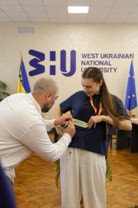 Також у зустрічі взяла участь декан соціально-гуманітарного факультету Оксана Гомотюк та її заступниця – Оксана Писарчук. Подякою від УАС за вагомий внесок у розвиток студентської спільноти, підтримку ініціатив молоді та активну участь у діяльності Української асоціації студентів, за підтримку в підготовці та запуск програми «UAS Pool of Trainers» та за можливість її реалізації на базі Західноукраїнського національного університету було нагороджено студентського декана соціально-гуманітарного факультету, в.о. керівника відокремленого підрозділу ГО «Українська асоціація студентів» у Тернопільській області – Владислава Барну.