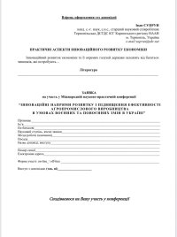 Для участі у роботі конференції потрібно надіслати електронний варіант заявки та тез на адресу оргкомітету: е-mail: econfds@gmail.com не пізніше 26 вересня 2025 року. Файли називати за прикладом: Zayavka_Suprun; Tezy_Suprun.