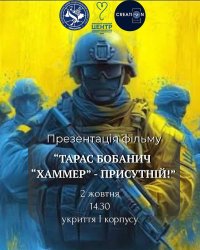 Запрошуємо всіх охочих на презентацію та перегляд фільму «Тарас Бобанич “Хаммер” - присутній!»