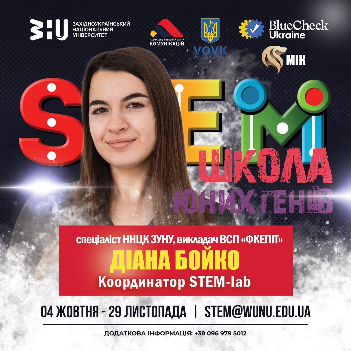 Оксана Коваль – керівник STEM-проєкту, директор навчально-наукового центру комунікацій ЗУНУ, голова правління ГО «Міжнародний інститут комунікацій», доцент кафедри економічної кібернетики та інформатики, доцент кафедри фінансів ім. С. І. Юрія. Її енергія та стратегічне бачення перетворюють STEM-школу на справжню платформу інновацій, де ідеї набувають сили, а талановита молодь зрощує крила для злету.