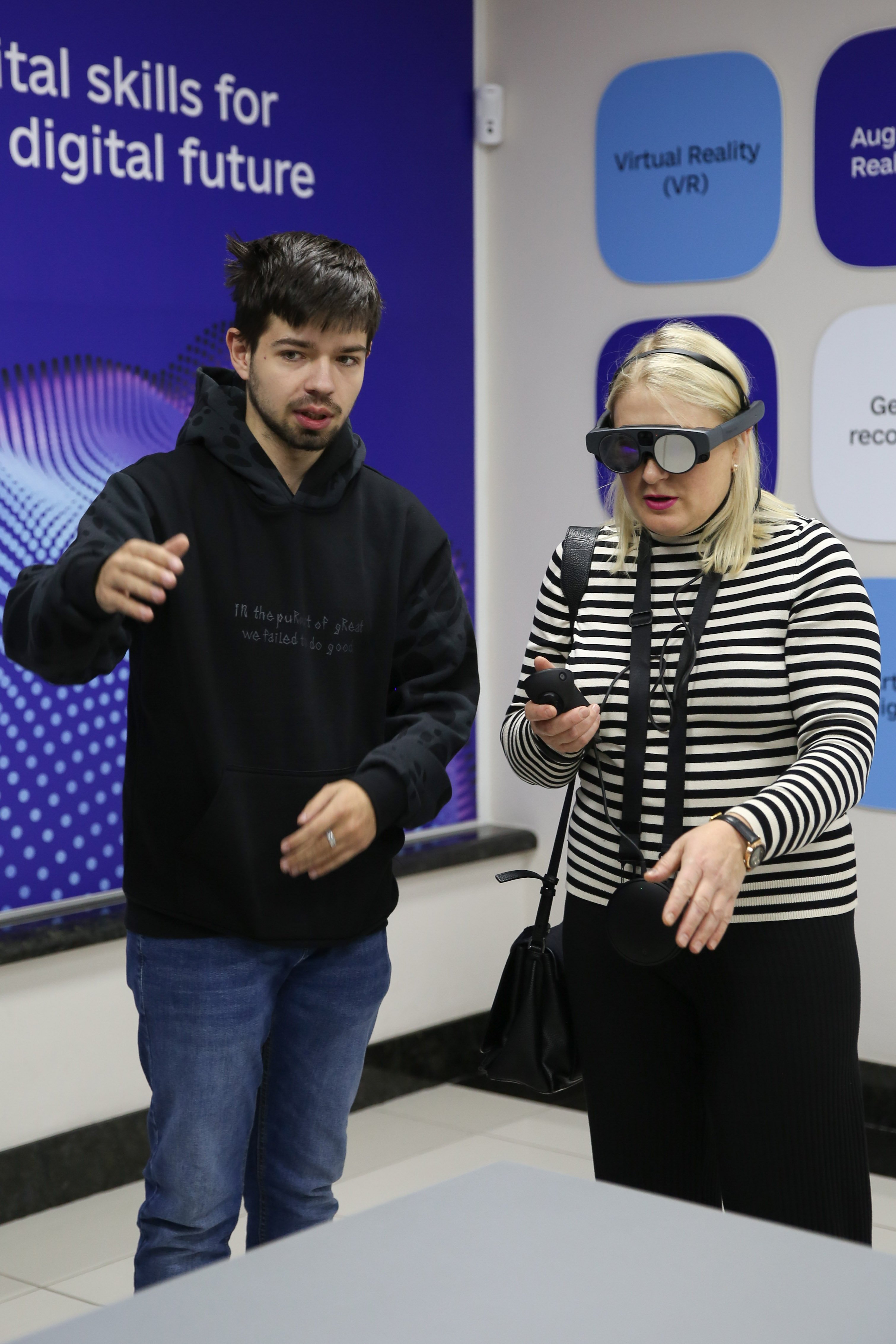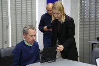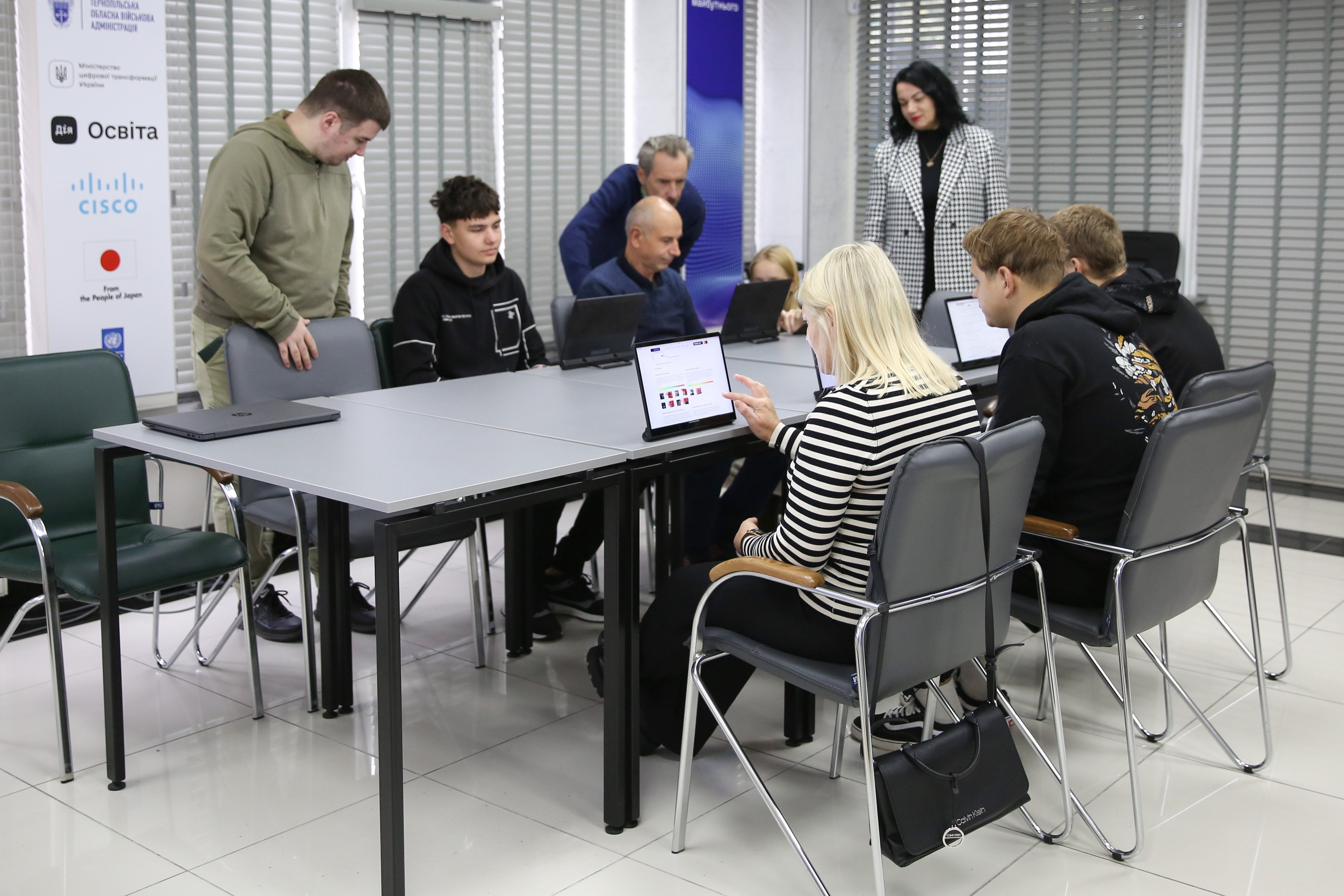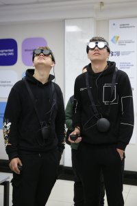 Директор хабу Назар Іваніцкий розповів про можливості імерсивного мультифункціонального хабу, пояснив правила користування 3D окулярами для віртуального перегляду, ознайомив студентів з принципом роботи сонячних панелей.