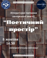 Літературні читання «Поетичний простір» відбудуться 8 жовтня о 14:30 год в університетській світлиці.