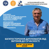 Інтенсивний курс для молоді з Дмитром Довгополим «Багатостороння дипломатія: від витоків до сучасності»