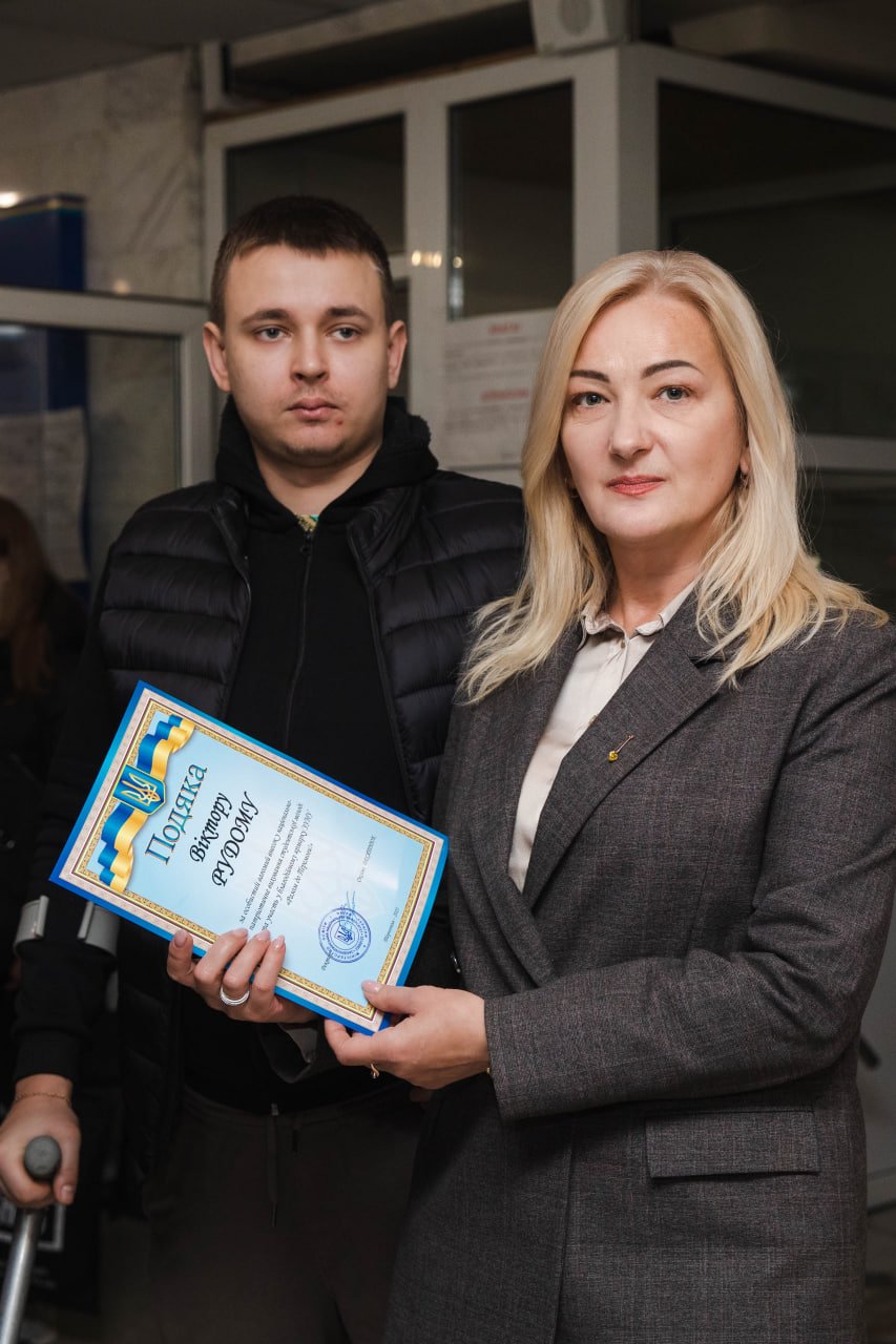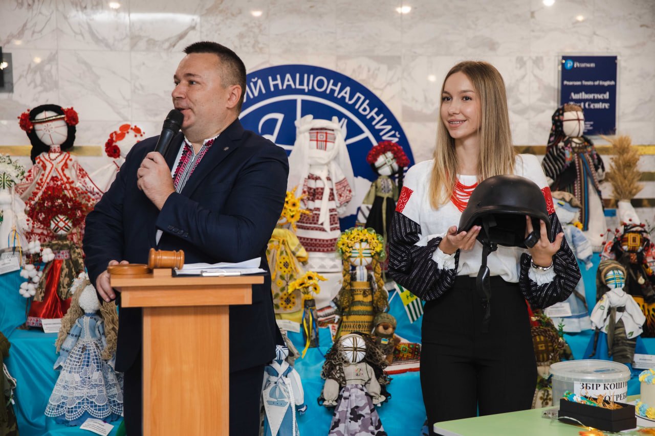 Перед присутніми виступили ветерани війни, випускник ФКІТу Михайло Гуменюк та студент І курсу ЮФ Віктор Рудий, які теж активно долучилися до аукціону і ярмарки.