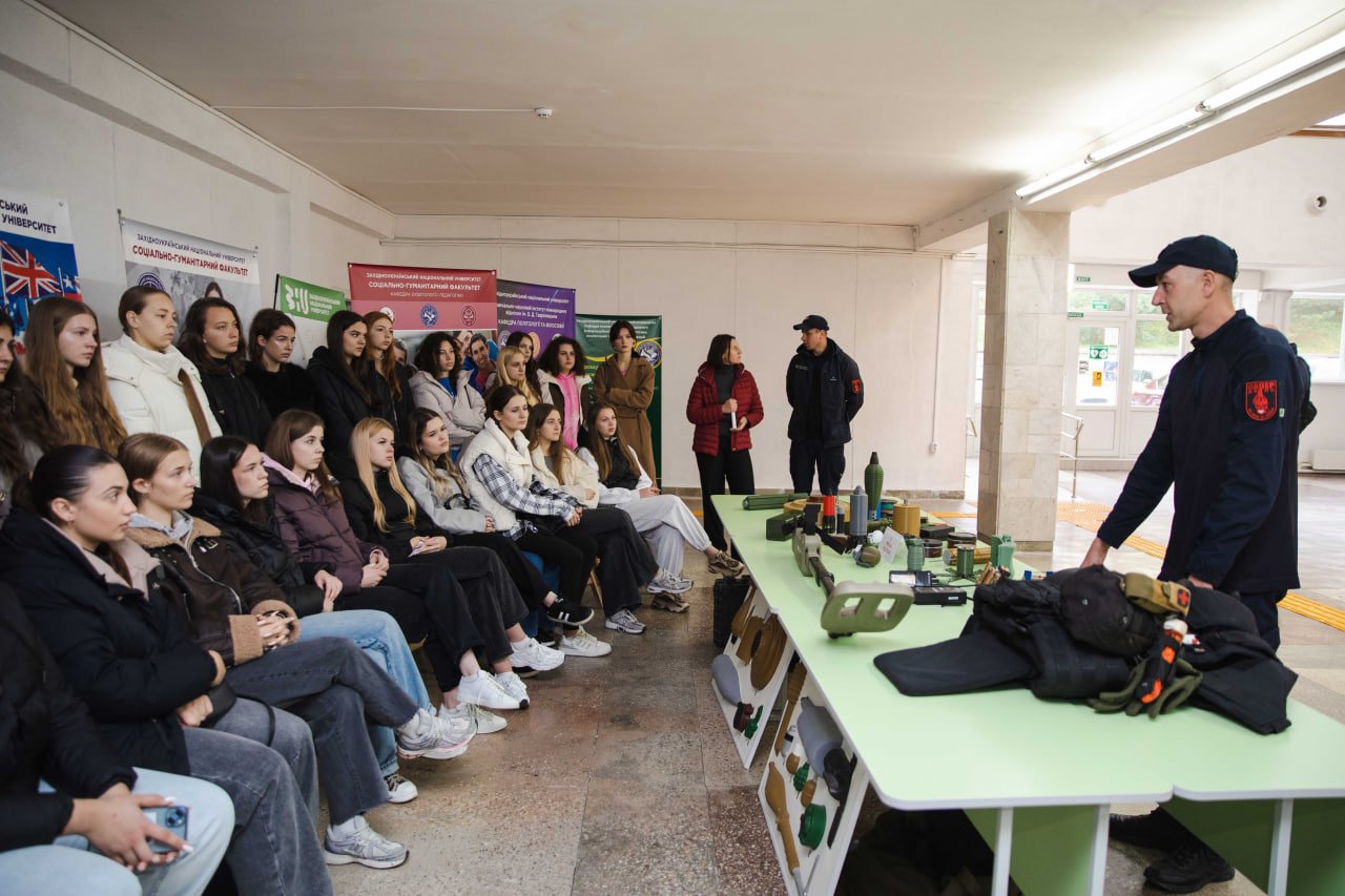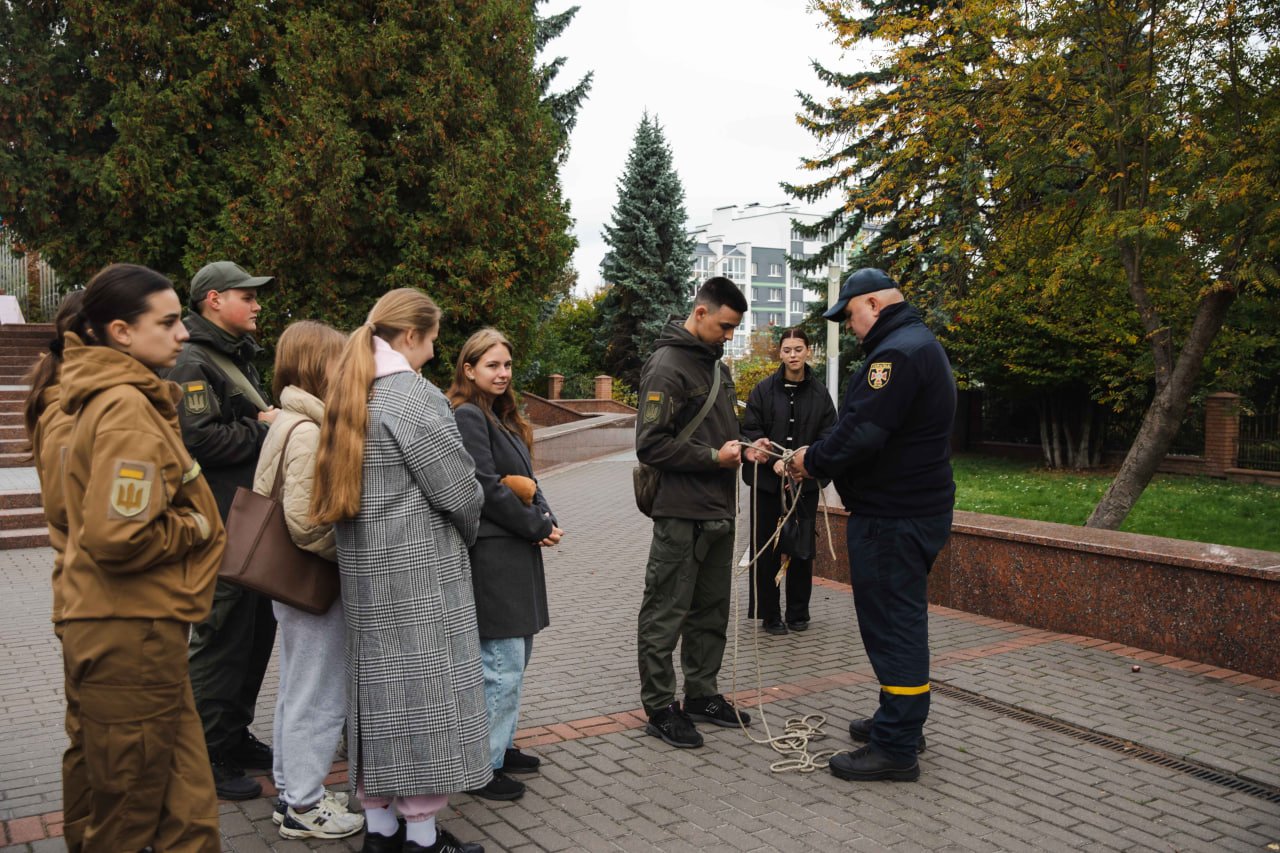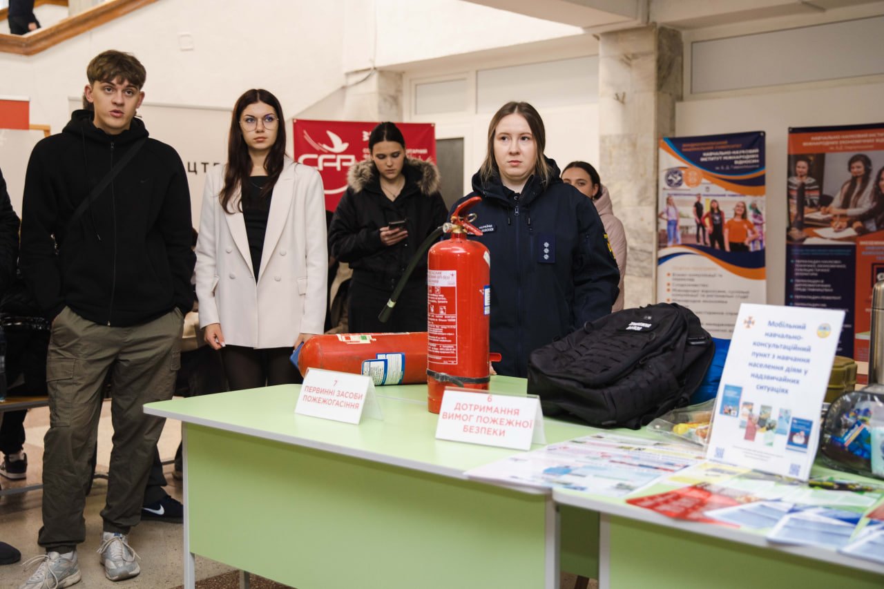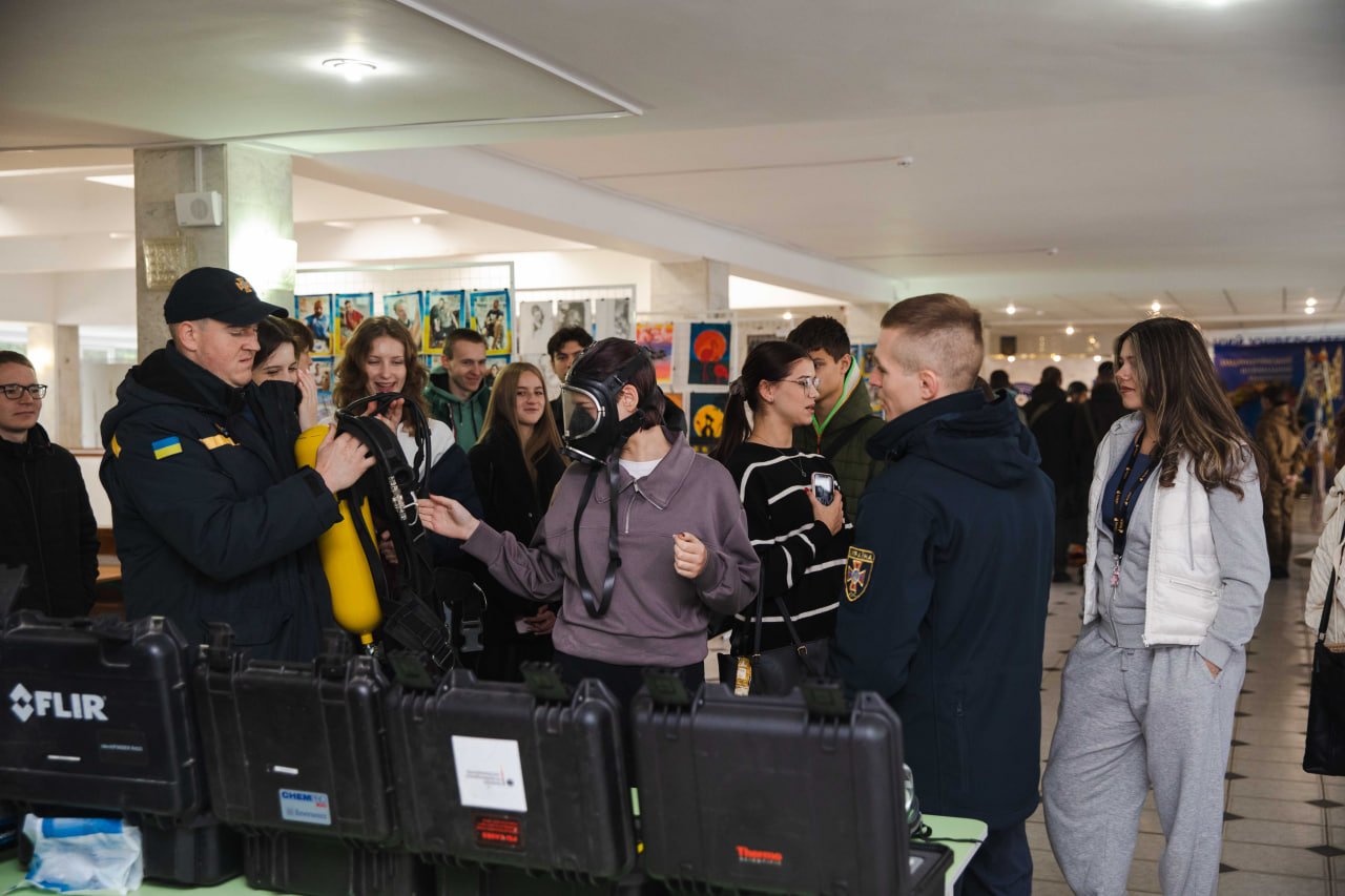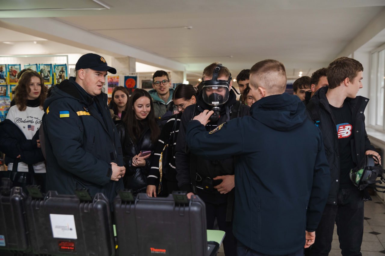 Студенти усіх факультетів університету мали змогу безпосередньо поспілкуватися з рятувальниками, поставити запитання, спробувати одягнути елементи спорядження, а також взяти участь у тренінгах із надання домедичної допомоги та евакуації.