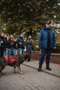 Працівники кінологічного та рятувального відділення АРЗ СП Головного управління представили показове заняття «Кінологічна служба та гірські рятувальники», під час якого фахівці продемонстрували можливості пошуку і рятування людей з-під завалів та на висоті.
