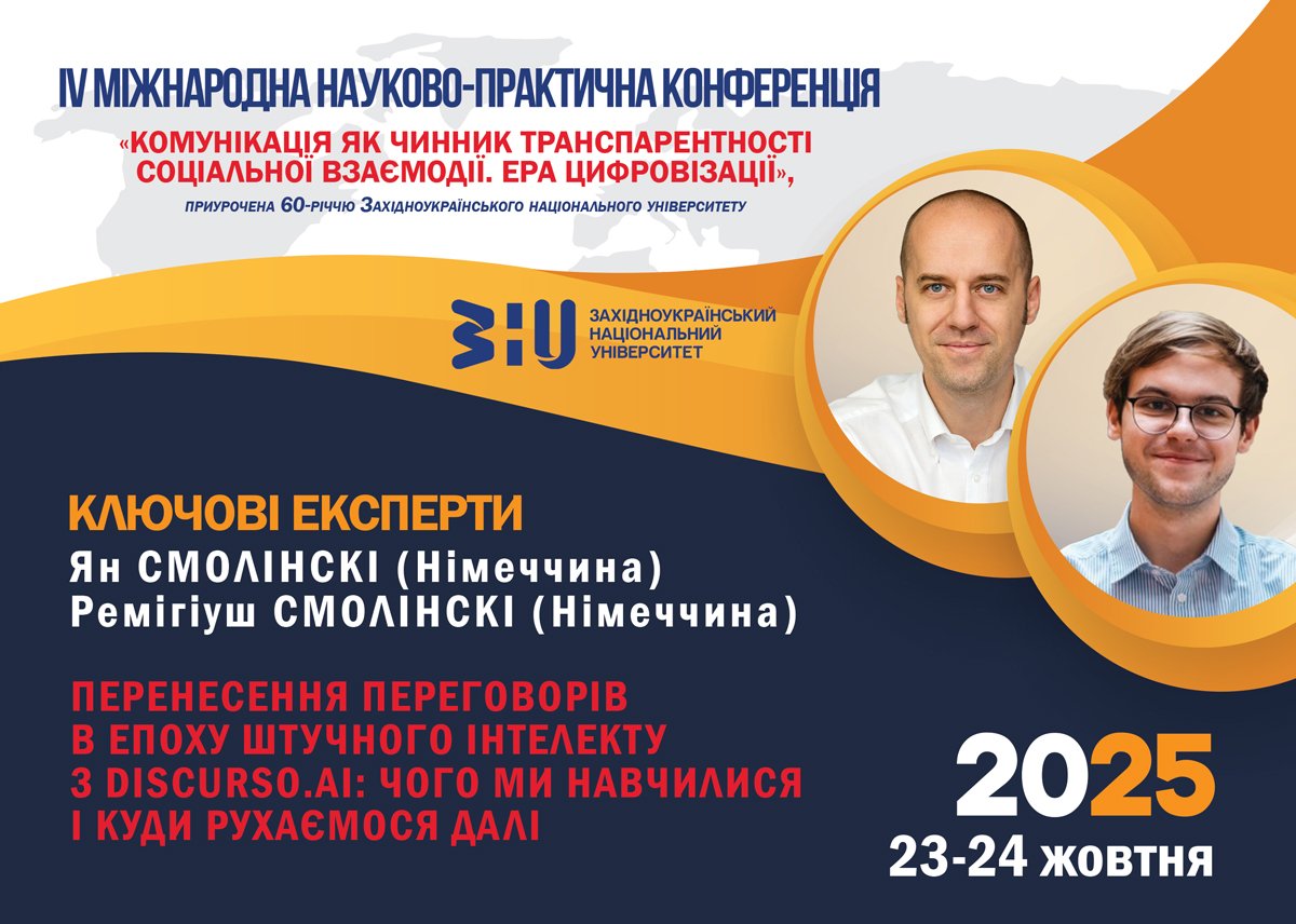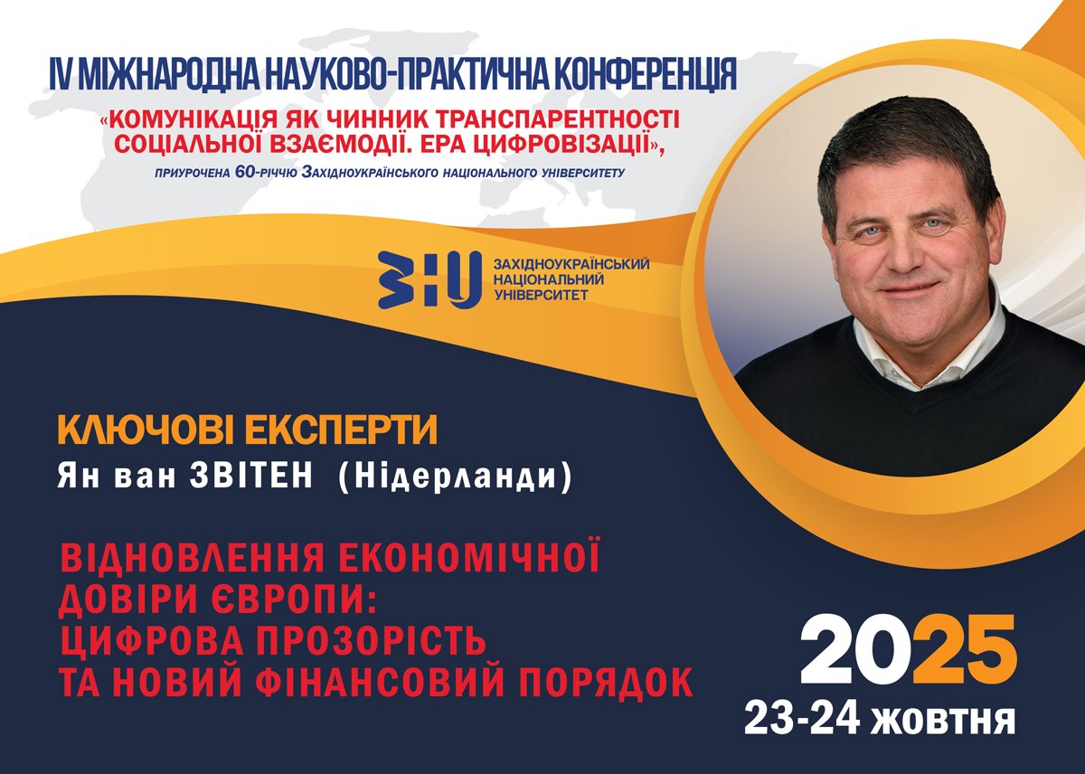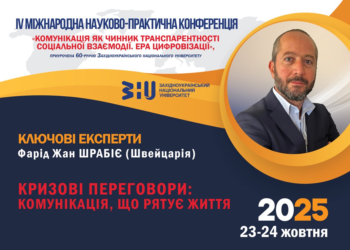 Протягом 23–24 жовтня 2025 року в Класичному університеті Тернополя відбудеться IV Міжнародна науково-практична конференція «Комунікація як чинник транспарентності соціальної взаємодії. Ера цифровізації», присвячена 60-річчю Західноукраїнського національного університету.