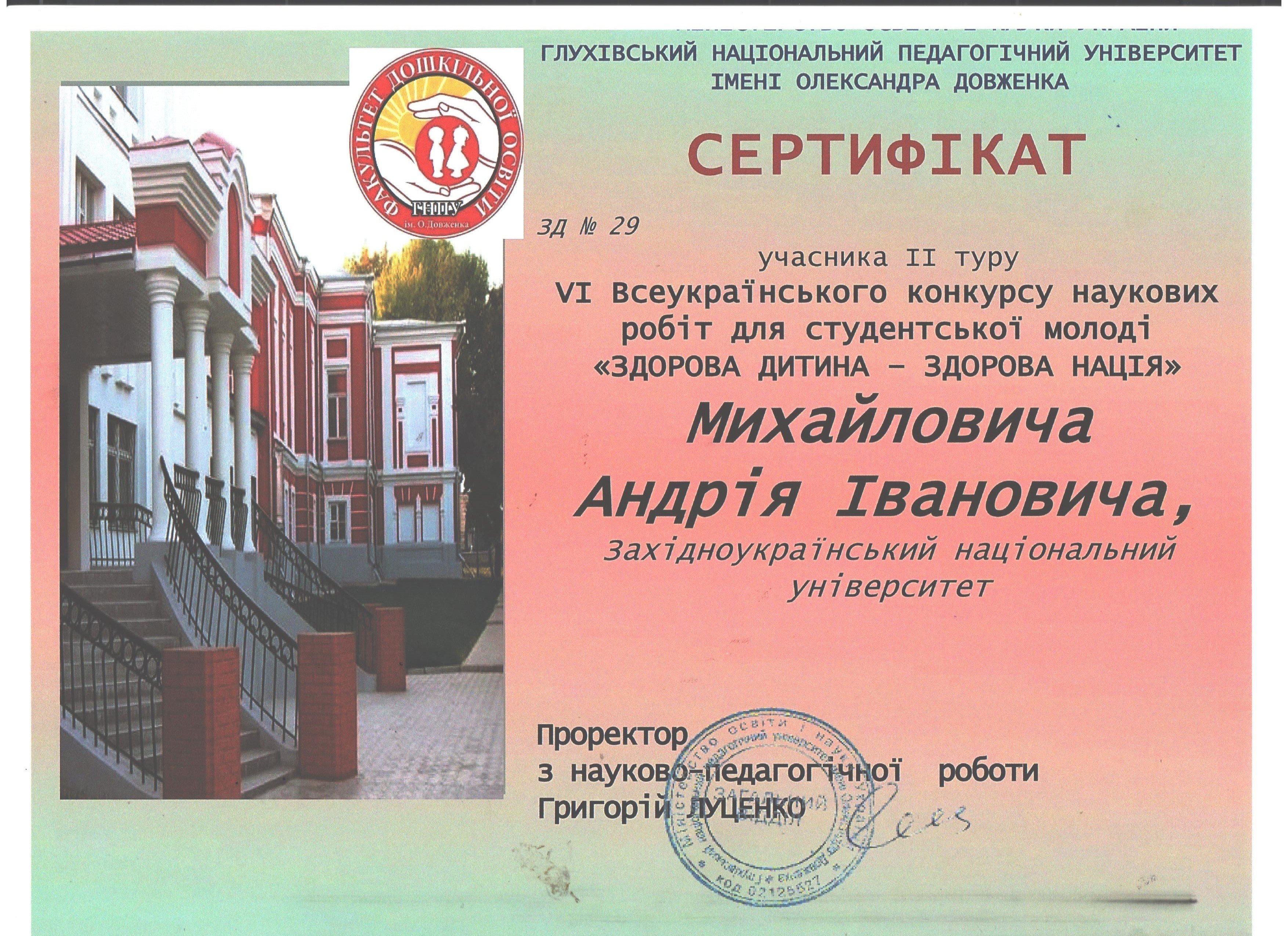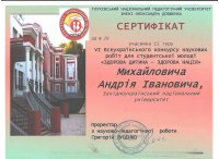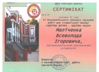 Студенти спеціальності "Фізична культура і спорт" Андрій Михайлович та Всеволод Маліченко взяли участь у VI Всеукраїнському конкурсі наукових робіт для студентської молоді "Здорова дитина — здорова нація", який проходив у Глухівському національному педагогічному університеті імені Олександра Довженка.