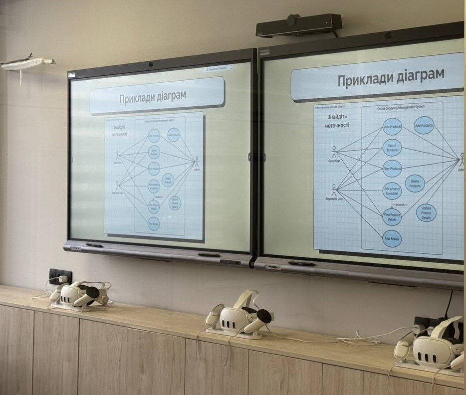 На курсі «Комп’ютерне моделювання» учасники практично створювали UML-діаграму варіантів використання (Use Case Diagram) для групових STEM-проєктів із застосуванням онлайн-сервісу draw.io. Учні визначали основних акторів, варіанти використання та зв’язки між ними, що дозволило краще зрозуміти структуру й логіку модельованої системи. Крім того, слухачі ознайомилися з теоретичними основами UML-діаграм діяльності (Activity Diagram), розглянули їх призначення, основні елементи та приклади застосування у сучасному проєктуванні.