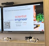 У межах курсу «STEM-English Pitching Lab» головну увагу було зосереджено на темі самопрезентації у діловому середовищі та перших кроках побудови кар’єри у STEM-професіях. Учасники визначали необхідні навички та особистісні якості для професійного розвитку, створювали власні резюме на європейському порталі Europass для подання заявок на вакансію інженера, а також обговорювали типові запитання, що можуть виникнути під час співбесіди. Завдяки інтерактивним партам STEM-лабораторії школярі змогли практично відпрацювати комунікаційні навички та отримати досвід побудови ефективної професійної самопрезентації.