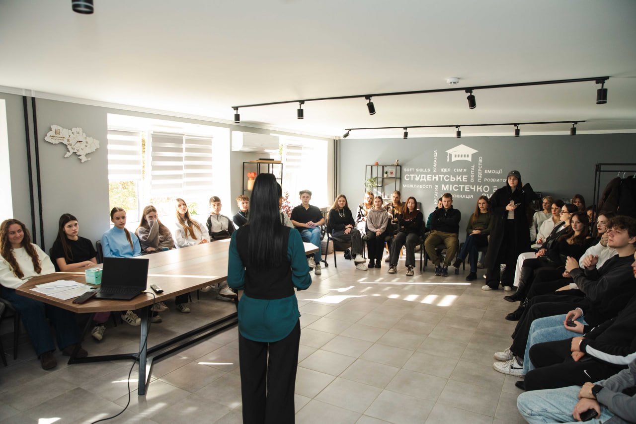 Спікером тренінгу виступила Крупник Зоряна Ігорівна — фахівець навчально-наукового центру соціально-психологічної підтримки та резильєнтності, доцент кафедри психології та соціальної роботи Західноукраїнського національного університету. Її професіоналізм, щирість і вміння працювати з молоддю створили теплу атмосферу взаємної підтримки та довіри.