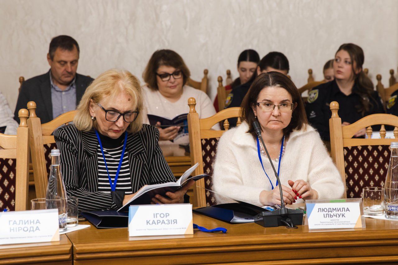 Звернулася до присутніх директор департаменту освіти і науки Тернопільської ОВА Ольга Хома: «Усі перспективні ідеї, які ми сьогодні втілюємо, стають можливими завдяки нашим захисникам, які боронять кордони України. Серед них є чимало освітян, і лише з Тернопільщини понад дві сотні педагогів нині перебувають на передовій.