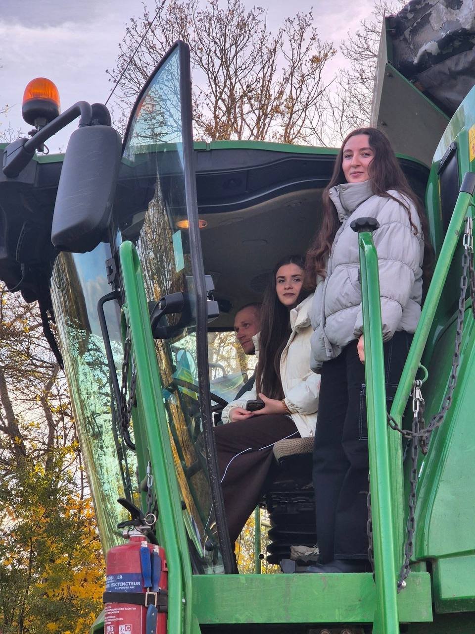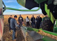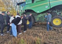 Після цього під наглядом викладачів (проф. Антін Шувар, доцент Роман Бица) студенти з кабіни виконували зміни в налаштуваннях параметрів зернозбирального комбайна (зокрема, оберти молотильного барабана, налаштування решітного стану, зазори підбарабання, швидкість очисного вентилятора і т.д.) та порівнювали якість обмолоту.