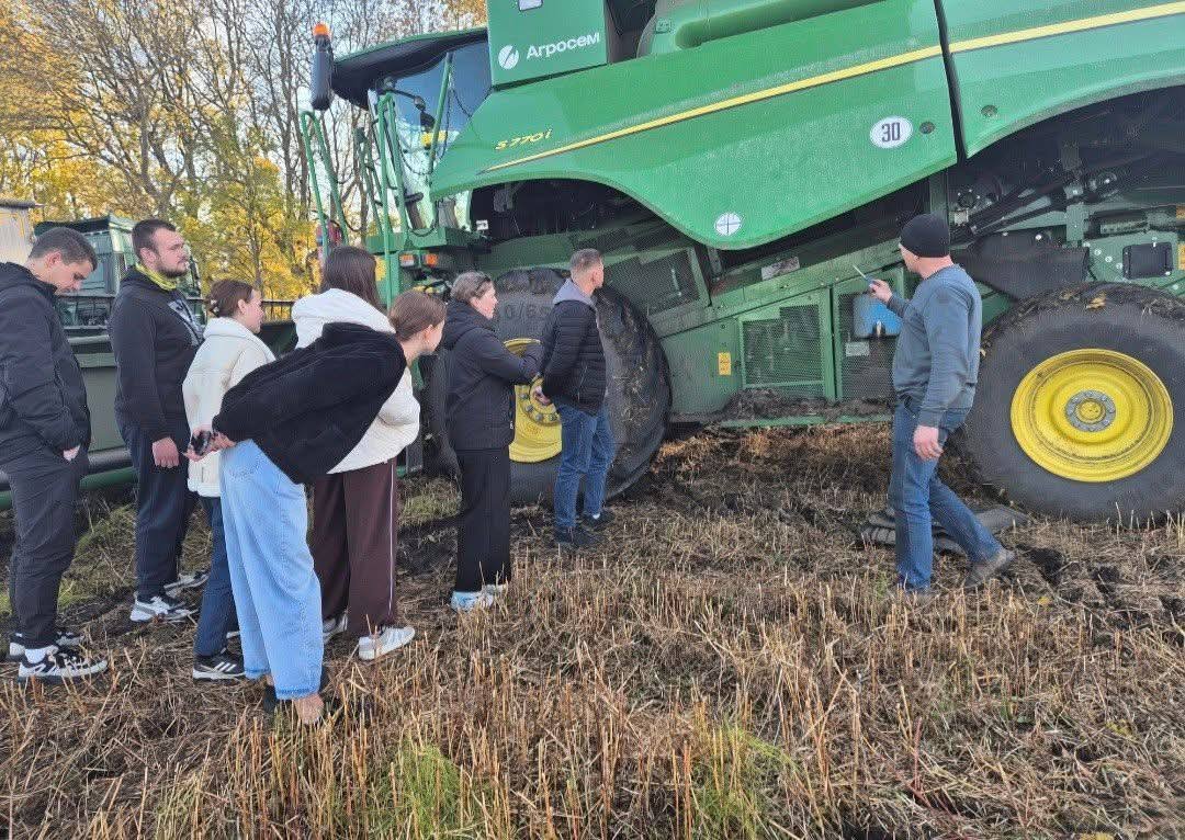 Спочатку студенти наочно ознайомилися із основними конструктивними вузлами комбайна та жниварки, а також отримали інформацію стосовно призначення та впливу кожного вузла на якість процесу обмолоту, дізнавшись про переваги та недоліки різних систем обмолоту.