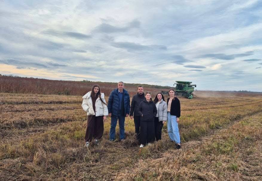 Обговорили зі студентами важливість зменшення втрат зерна при обмолоті, фактори, які на це впливають та методи вимірювання втрат. Окрім того, студенти попрактикувалися у роботі з системою навігації комбайна, створивши різними способами прямий маршрут для руху комбайна, а також навчилися працювати з системою документування урожайності