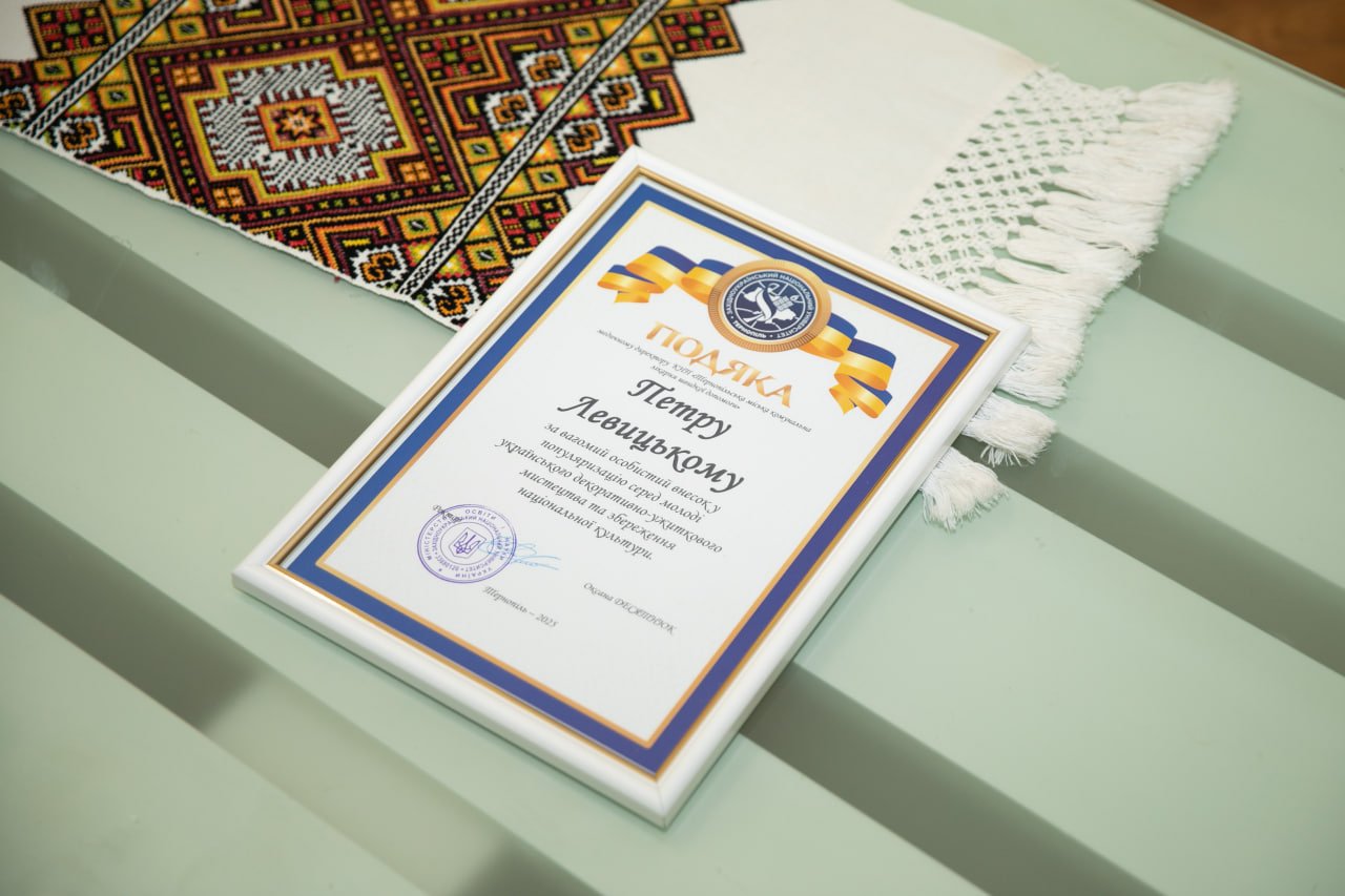 Петро Левицький – медичний директор КНП «Тернопільська міська комунальна лікарня швидкої допомоги», майстер народної творчості, перший на Тернопільщині, хто впровадив 3D-методику об’ємної візуалізації солом’яного мистецтва. Його роботи експонуються на всеукраїнських та міжнародних виставках, а сьогодні отримали можливість зазвучати по-новому – у стінах факультету, з яким автора пов’язує багаторічна співпраця.