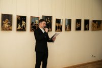 До привітань також долучився і професор кафедри менеджменту, публічного управління та персоналу ЗУНУ Михайло Шкільняк, який розповів, як зʼявилась ідея цієї виставки та подякував автору за внесок у культурний простір університету.