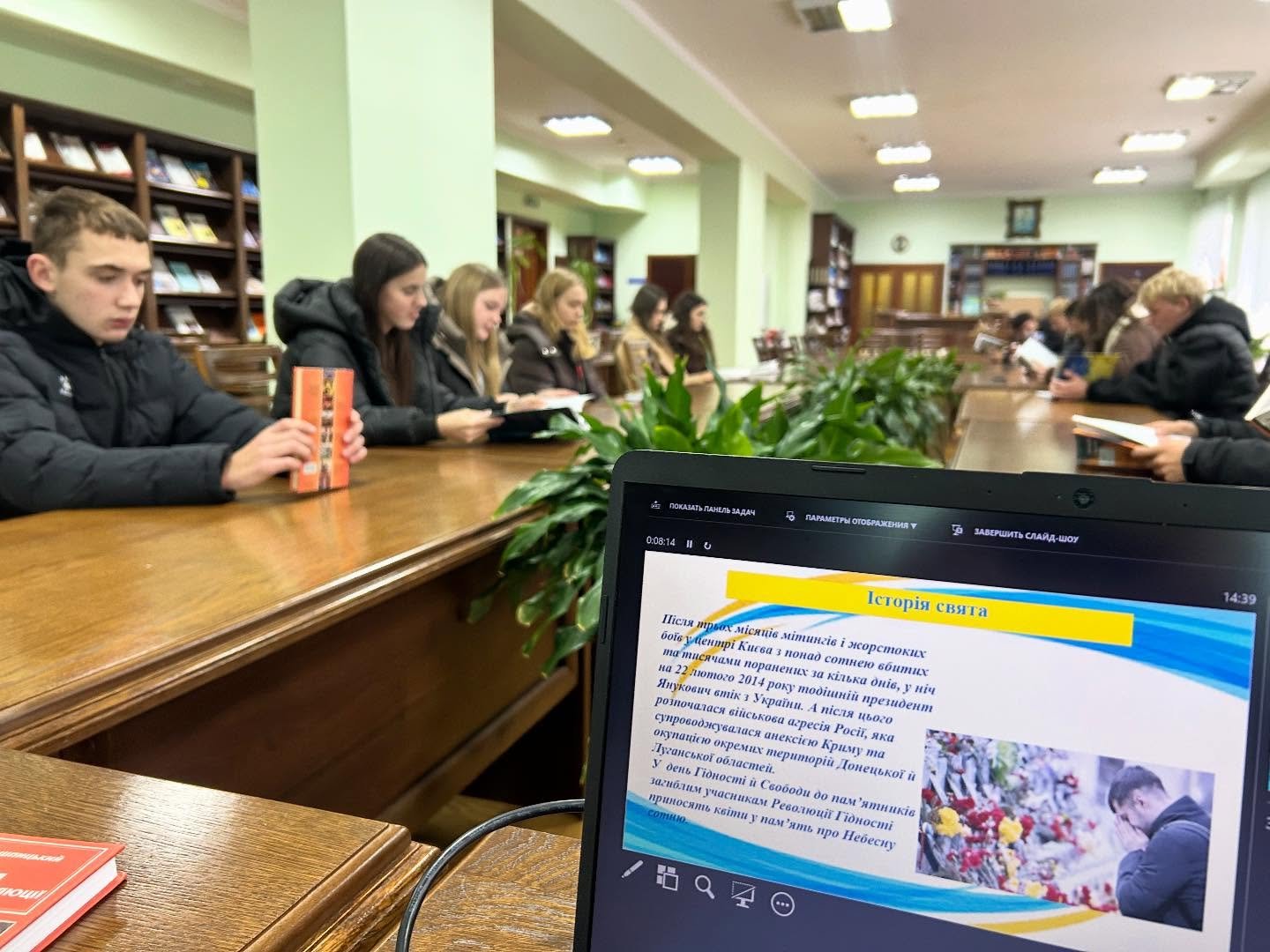 У бібліотеці ім. Л. Каніщенка проведено годину пам’яті, присвячену Дню Гідності та Свободи для студентів факультету фінансів та обліку та навчально-наукового інституту інноватики, природокористування та інфраструктури ЗУНУ.